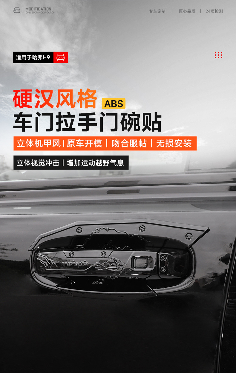 Second Generation Haval H9 Outer Handle Door Bowl Sticker Decorative Modified Door Handle Anti-Scratch Wear-Resistant Protection Accessories Supplies
