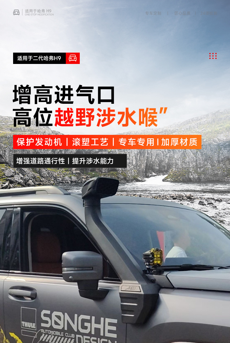 Second-Generation Haval H9 Wading Hose Off-Road Travel Special Accessories Modified High-Position Air Intake Pipe Roof Air Intake Mask
