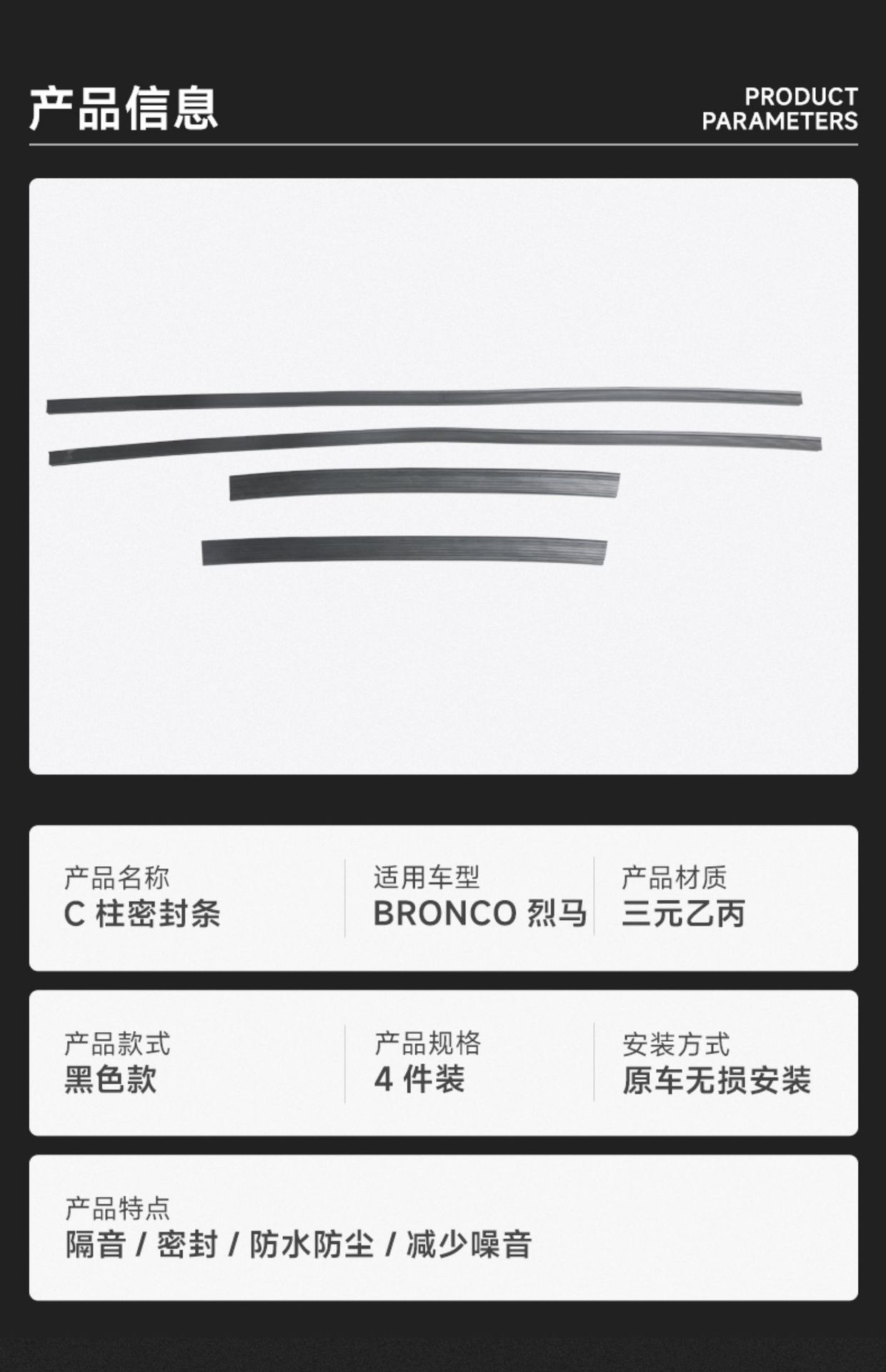 Tags: automotive weatherstripping, car door seal, dustproof seal, ford bronco accessories, noise reduction strip, rubber edge trim, soundproofing strip