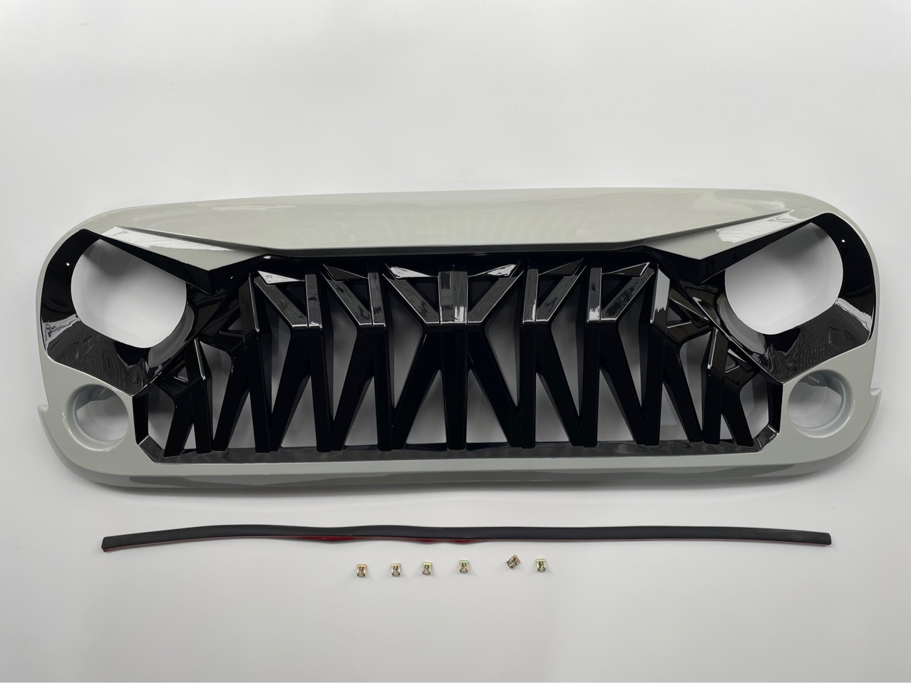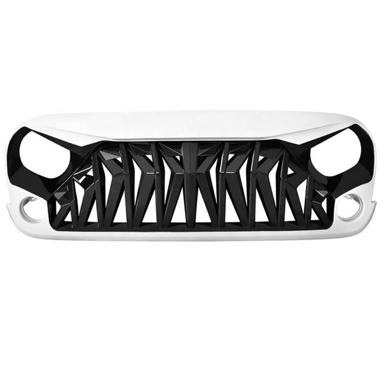 Upgrade your 2007-2018 Jeep Wrangler JK with our aggressive Shark Front Grille. Made of durable ABS with a non-destructive install. Bold black and white style.