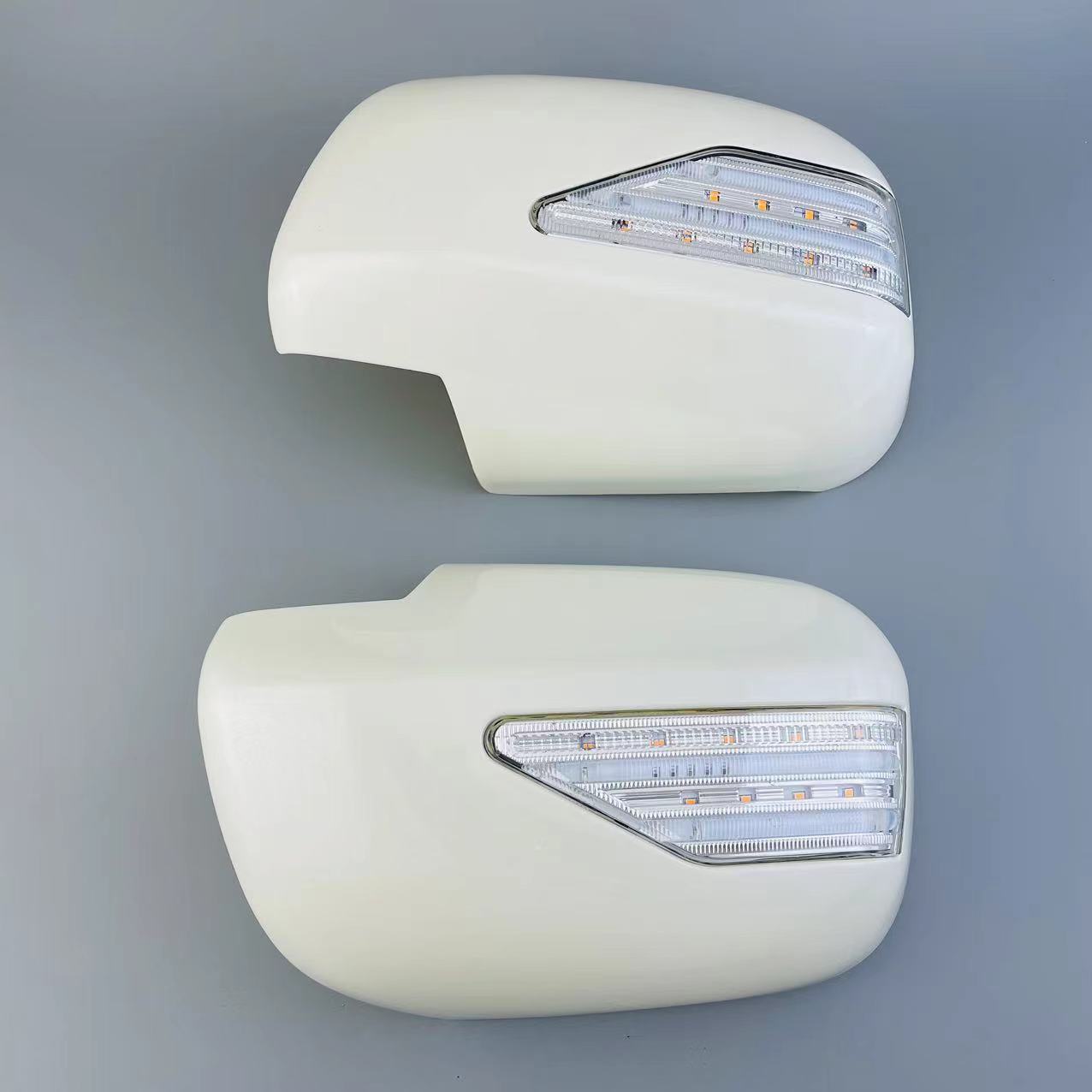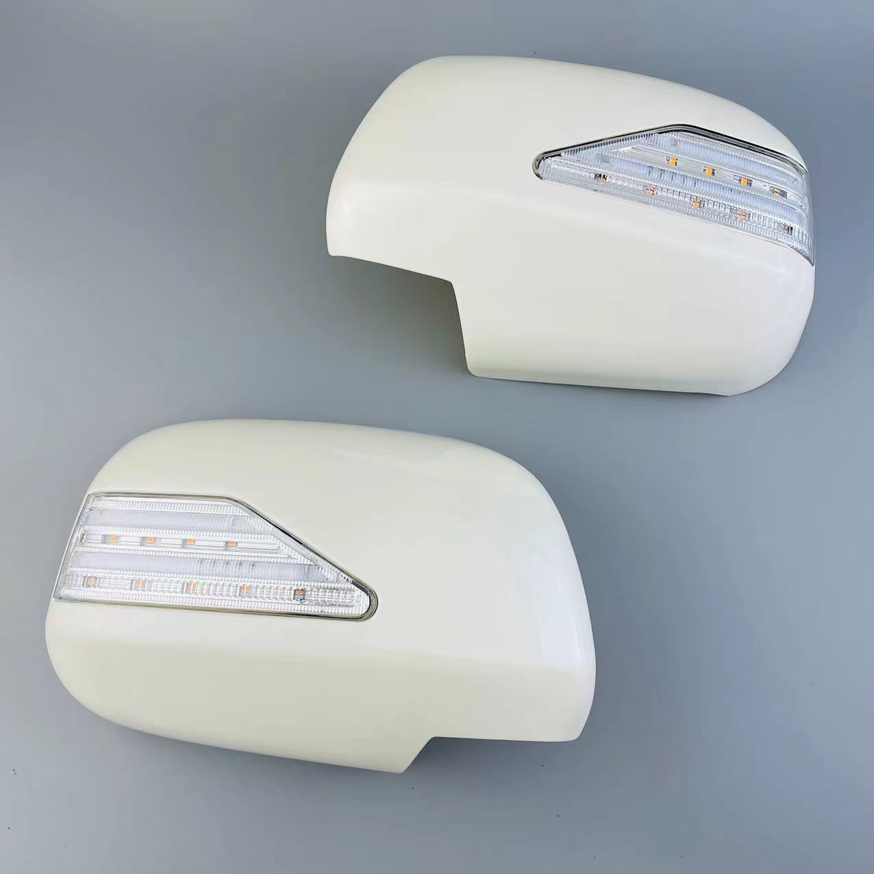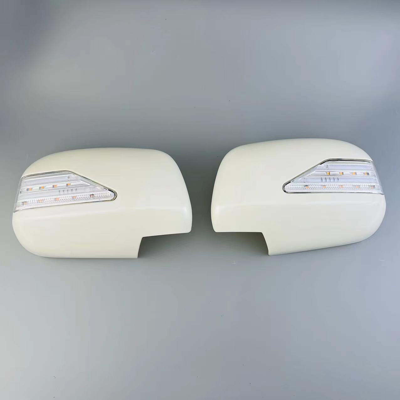 Upgrade your Lexus RX330 RX350 with pearl white side mirror covers featuring dynamic sequential LED turn signals. Durable ABS construction with a premium finish.