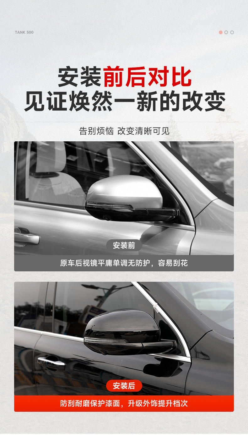 Tags: car styling accessories, exterior trim, mirror cover, rearview mirror shell, side mirror housing, Tank 500 Hi4-T