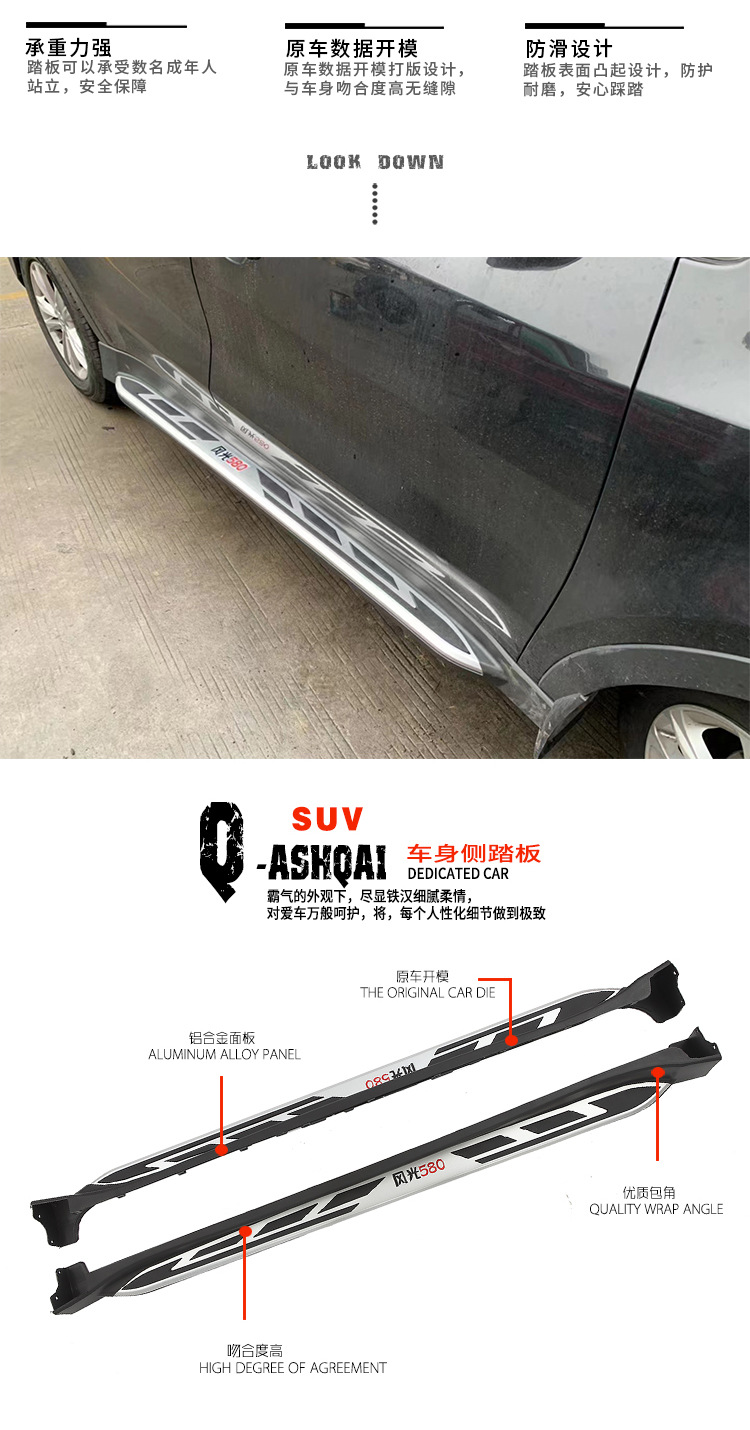 Upgrade your Dongfeng Fengguon 580 with durable aluminum side steps. Providing easy access, non-slip entry, and enhanced exterior protection for your SUV.