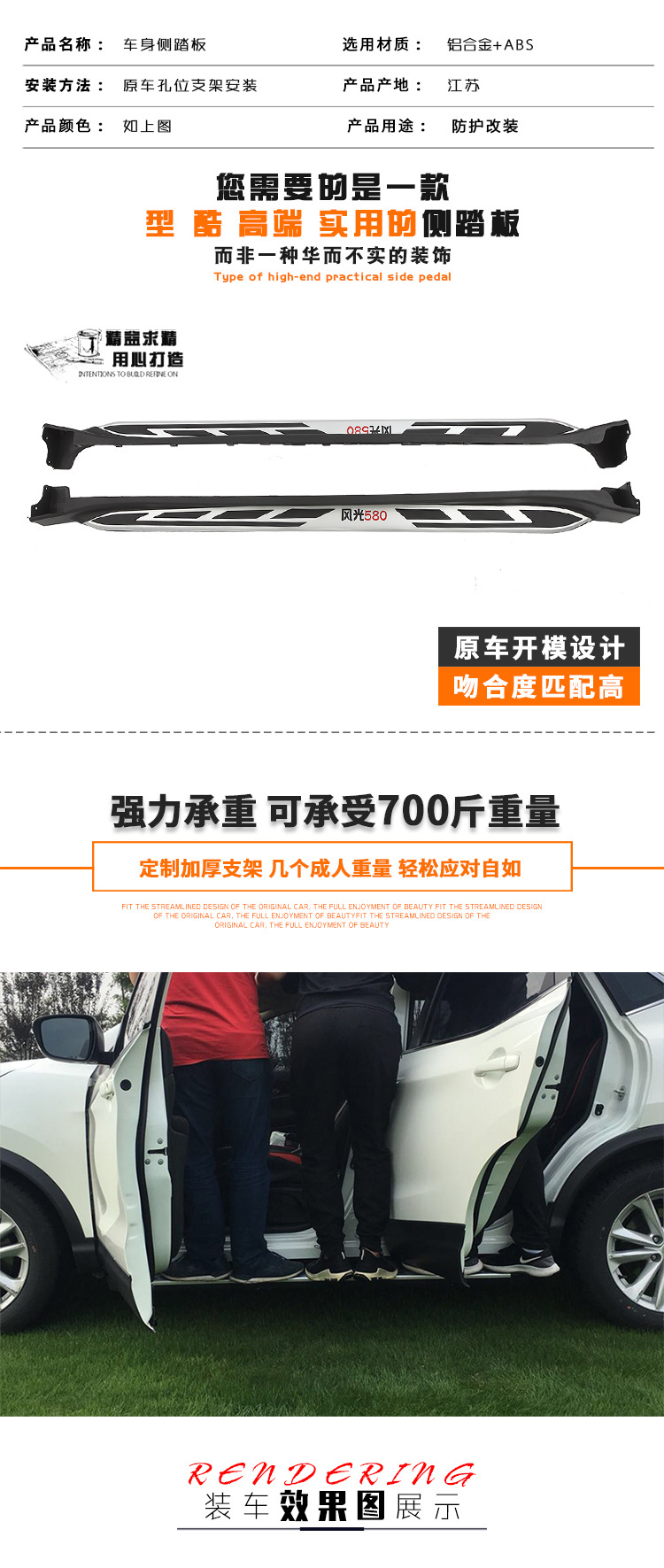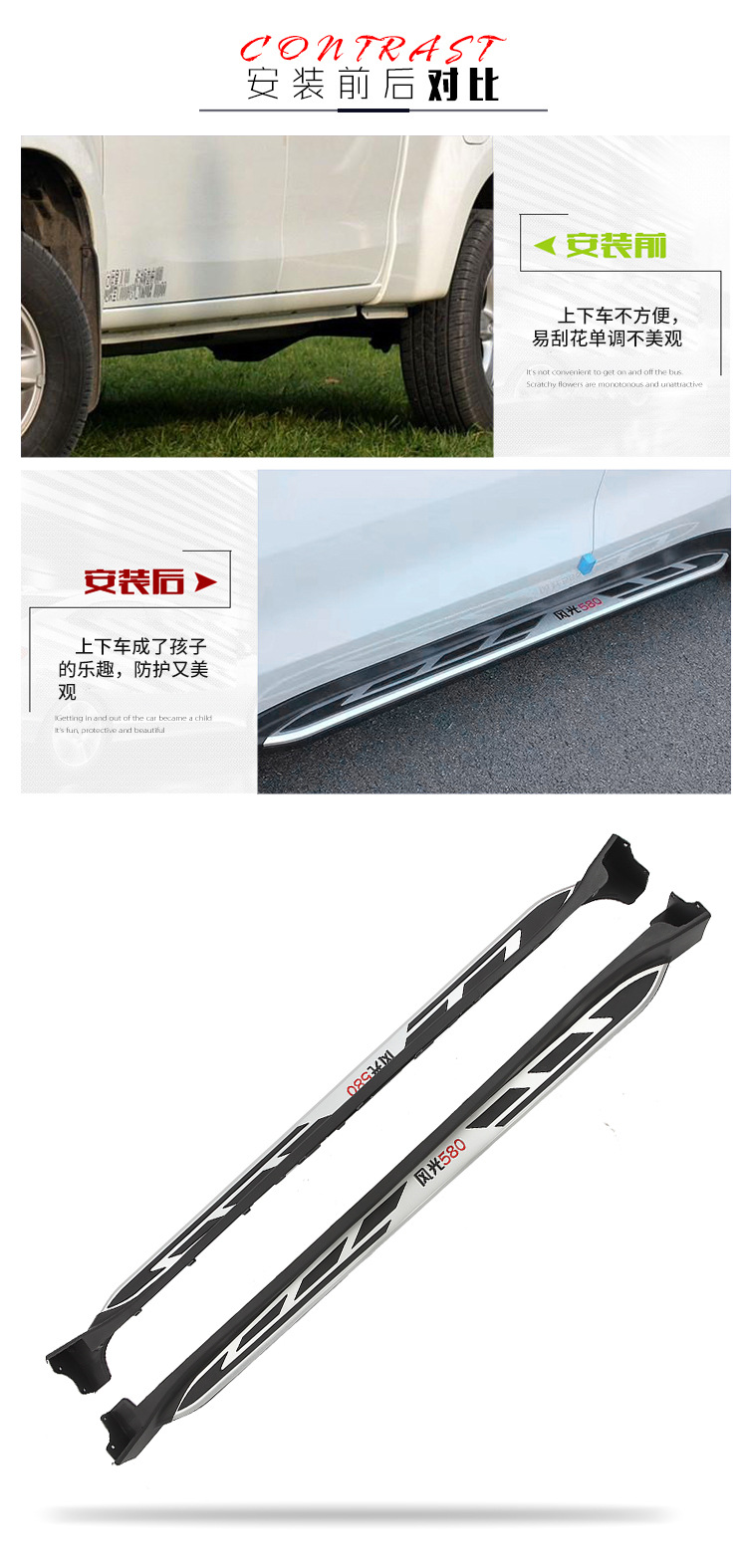 - Custom fitment specifically designed for Dongfeng Fengguon 580 SUV side protection and accessibility.