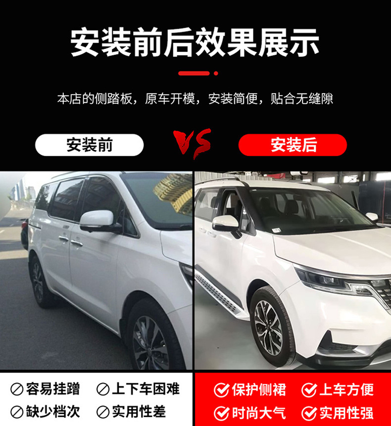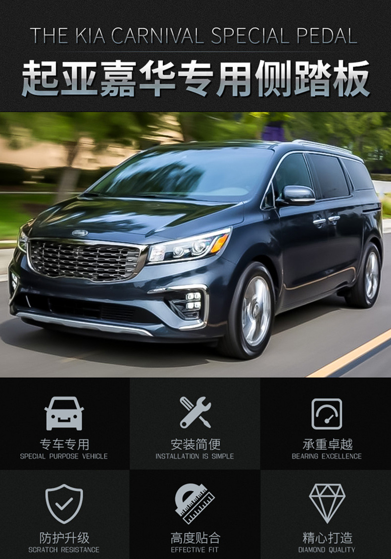 Tags: exterior upgrades, foot pedal plates, kia carnival accessories, nerf bars, running boards, side platform steps, side steps