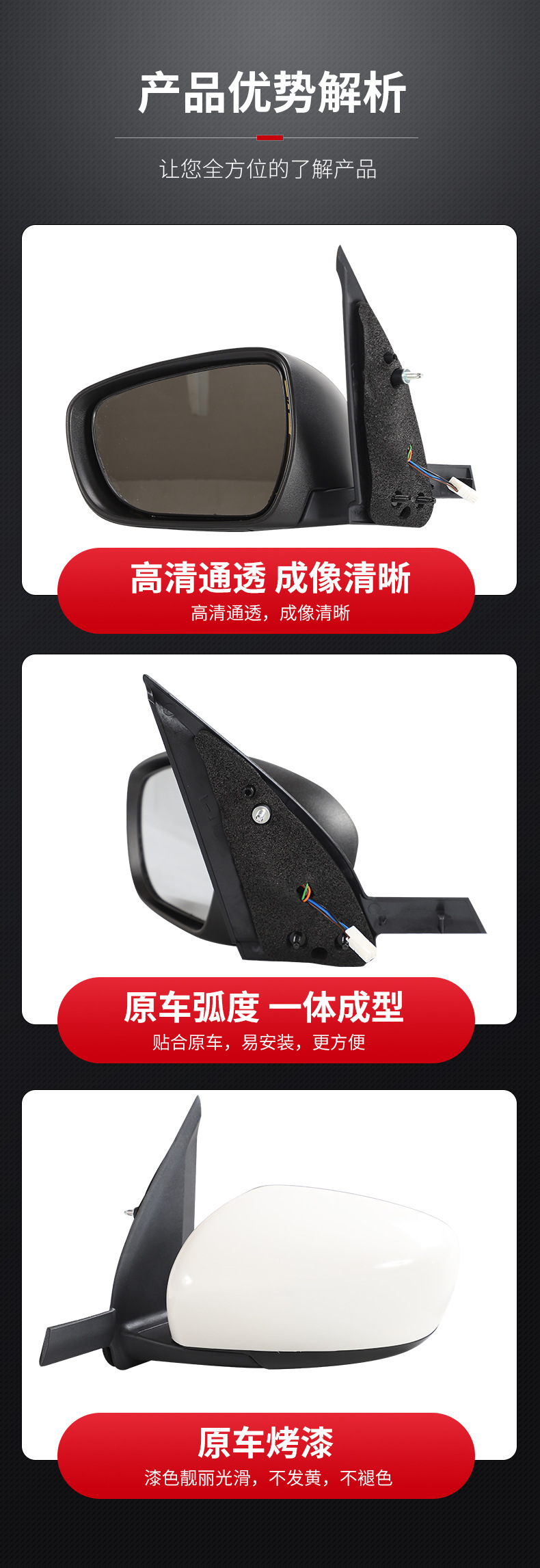 - Features high-definition clear glass to minimize blind spots and ensure wide-angle rear visibility.