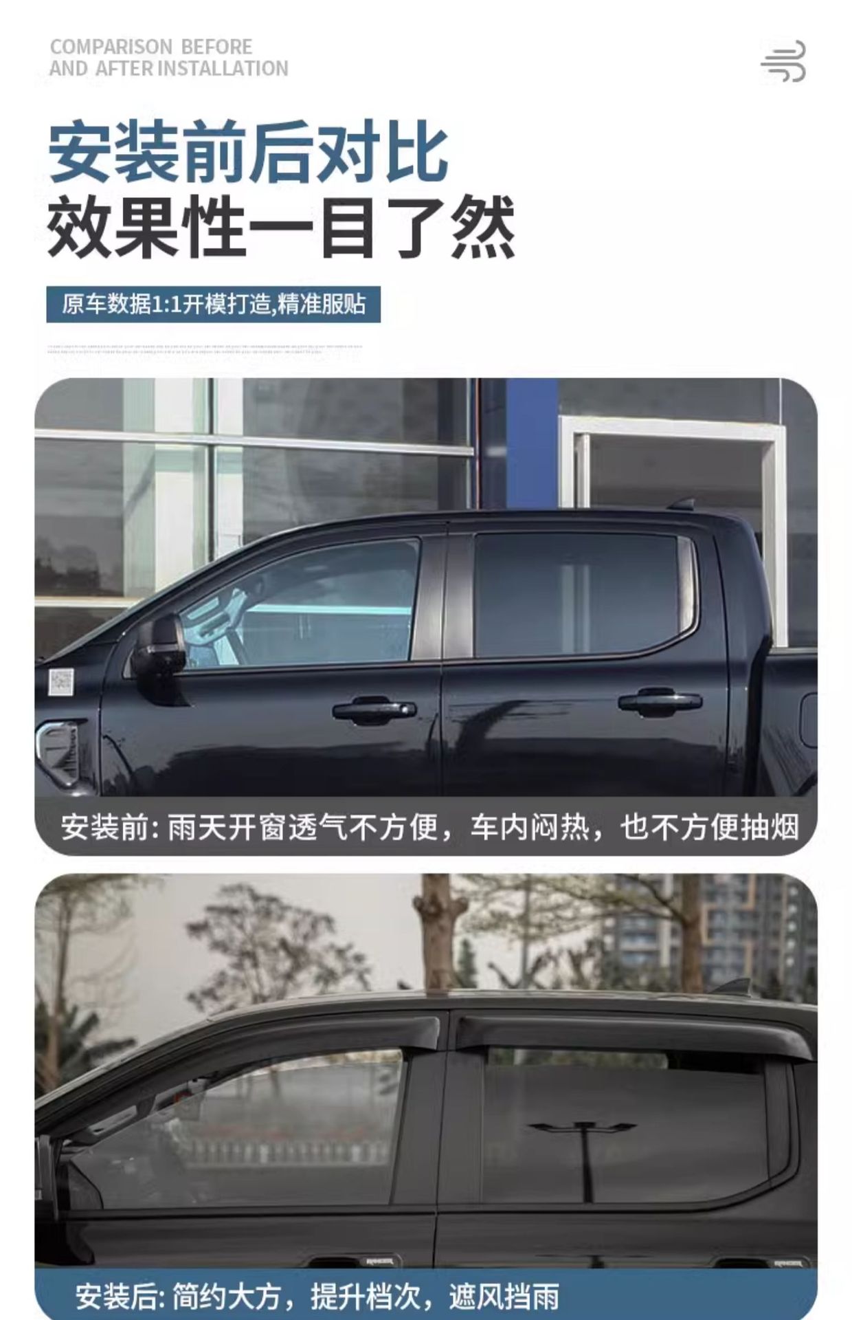 - Sleek Exterior Integration: Streamlined design provides a seamless integration with your vehicle’s window frame for a custom appearance.