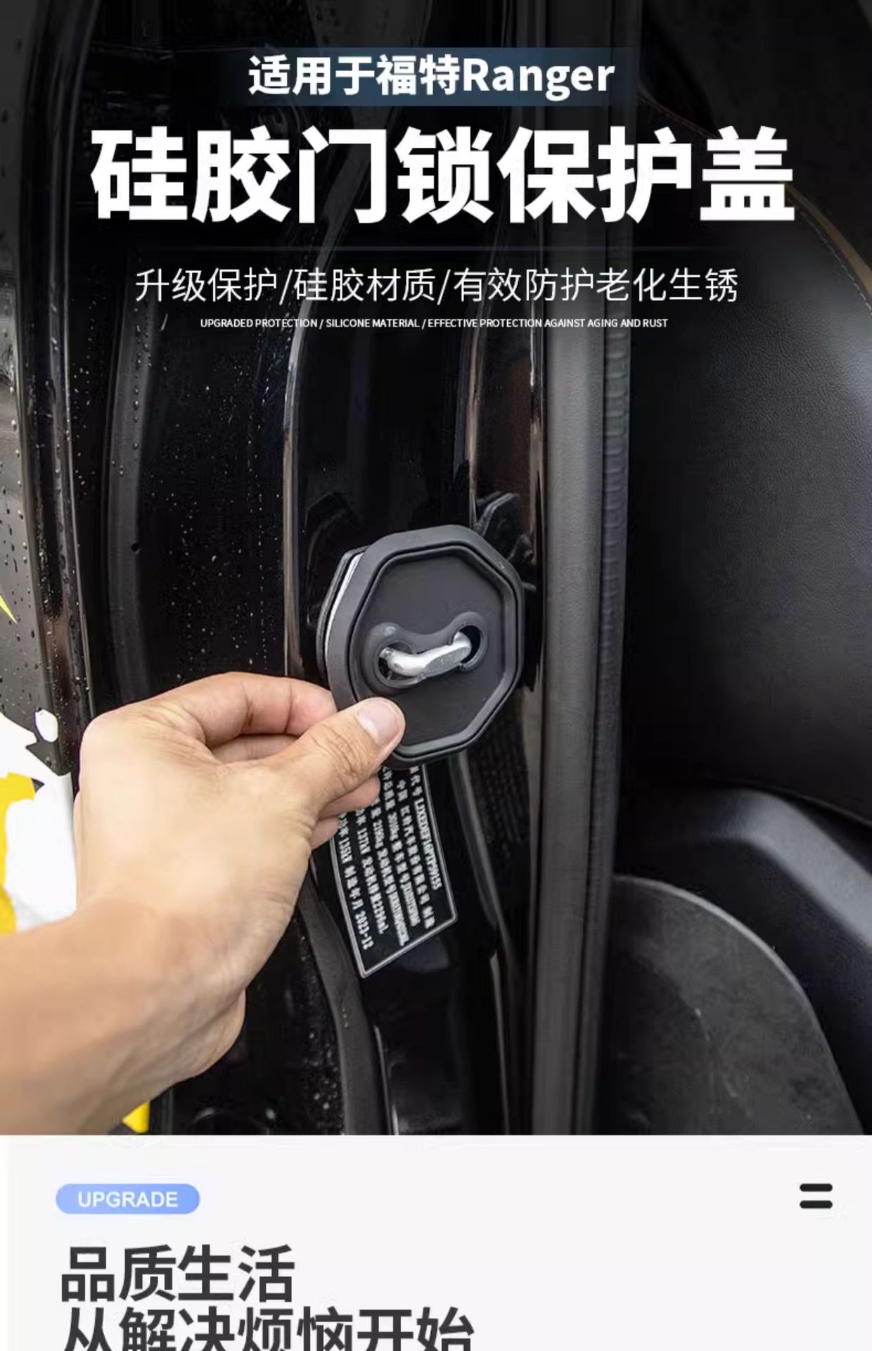 Tags: automotive styling, car interior trim, door latch guard, door lock cover, ford ranger accessories, rust protection, silicone protector