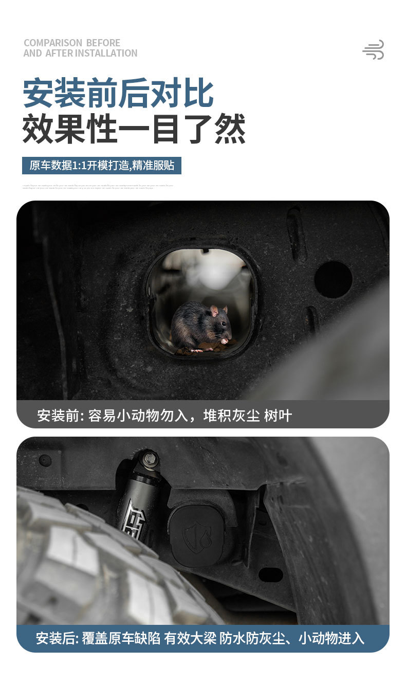 - Effectively blocks mud, dust, and sand from entering the frame rails to prevent internal corrosion.