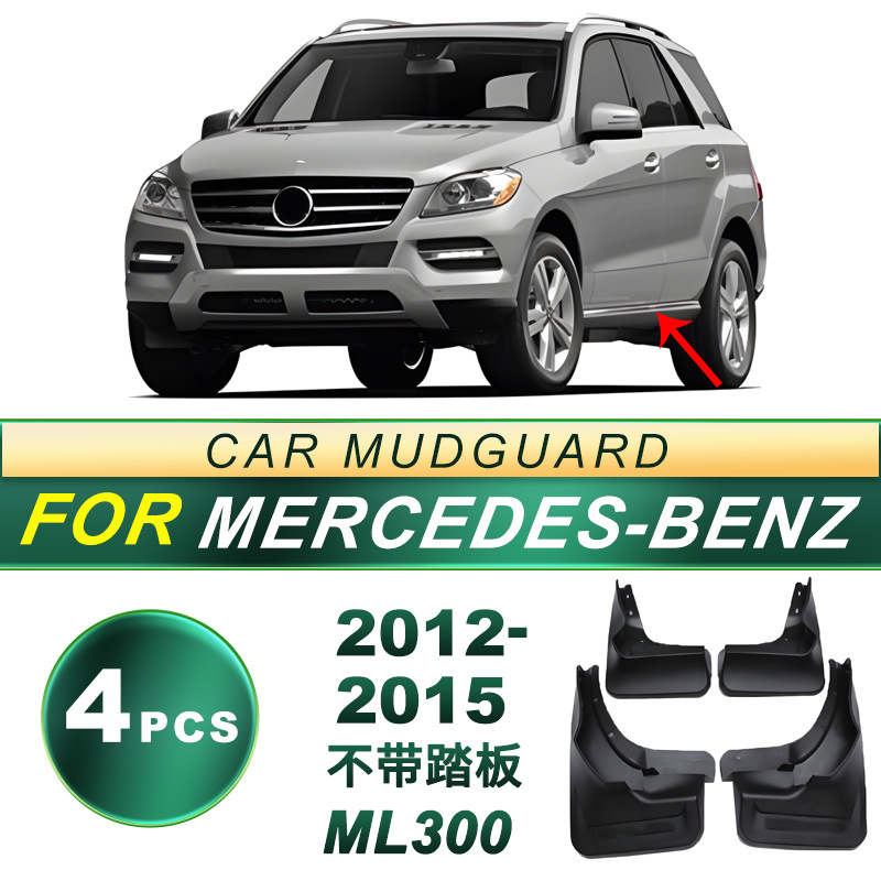- Custom fit mudguards designed specifically for 2012-2015 Mercedes-Benz ML300 models without side running boards.