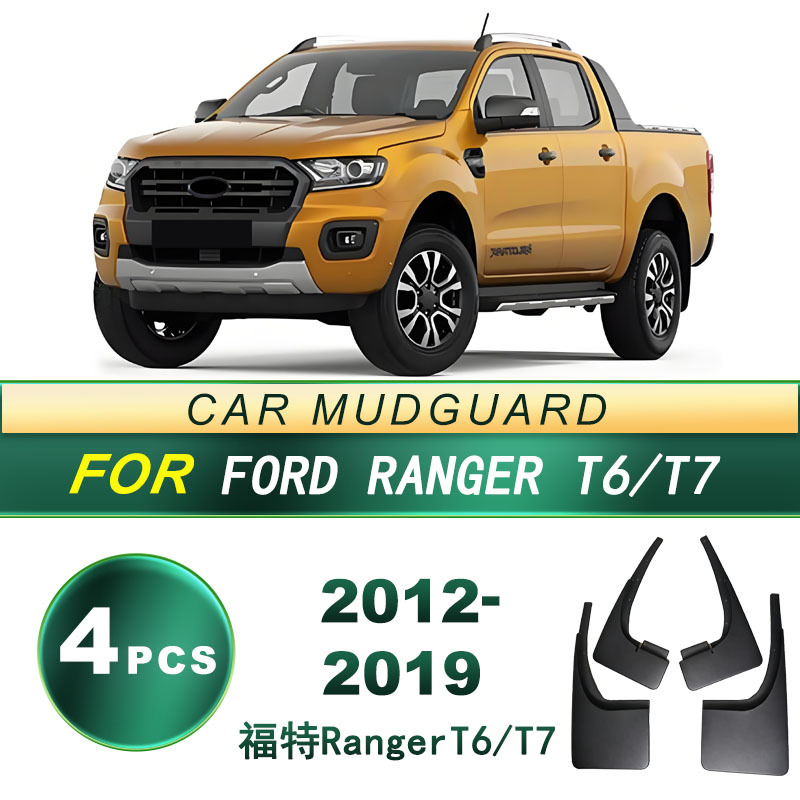 - Custom fit splash guards specifically engineered for Ford Ranger T6 and T7 models from 2012 to 2019.