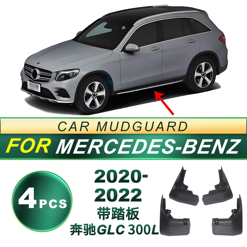Protect your Mercedes-Benz GLC 300L with our durable soft rubber mud flaps. Designed for 2020-2022 models with running boards to shield against mud and debris.