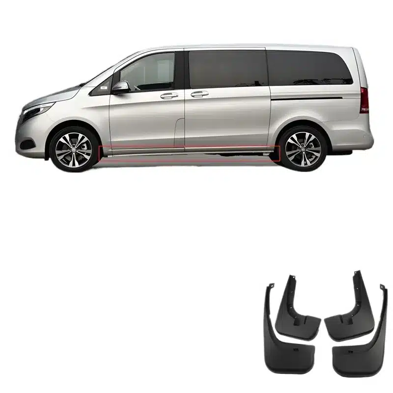 Enhance your Mercedes-Benz V-Class with durable soft rubber mud flaps. Designed for 2016-2022 short wheelbase models to provide superior body protection today.