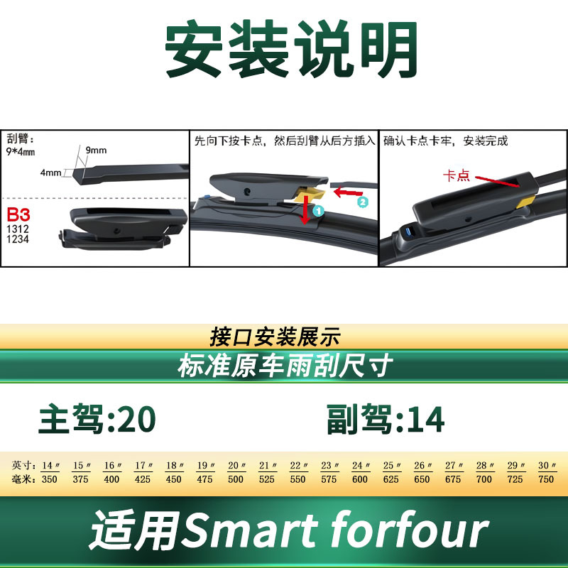 Upgrade your Smart Forfour with these premium frameless silent wiper blades. Features high-quality rubber for streak-free visibility and easy installation.