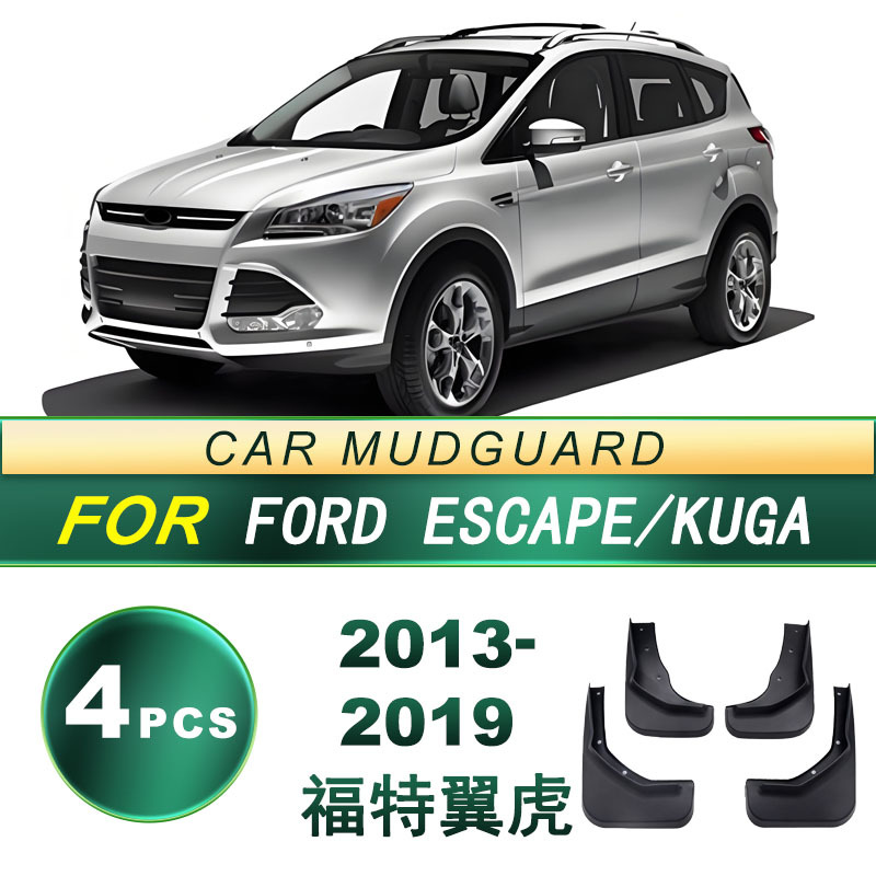 Protect your Ford Escape Kuga 2013-2019 with our durable 4-piece splash guard set. Made of flexible TPE to block mud and debris while maintaining paint quality.