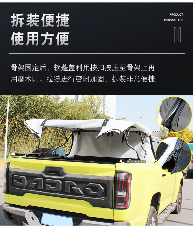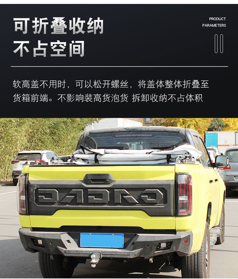 - Custom fit compatibility for GWM Cannon (Great Wall Poer) and JMC Dadao series pickup truck beds.