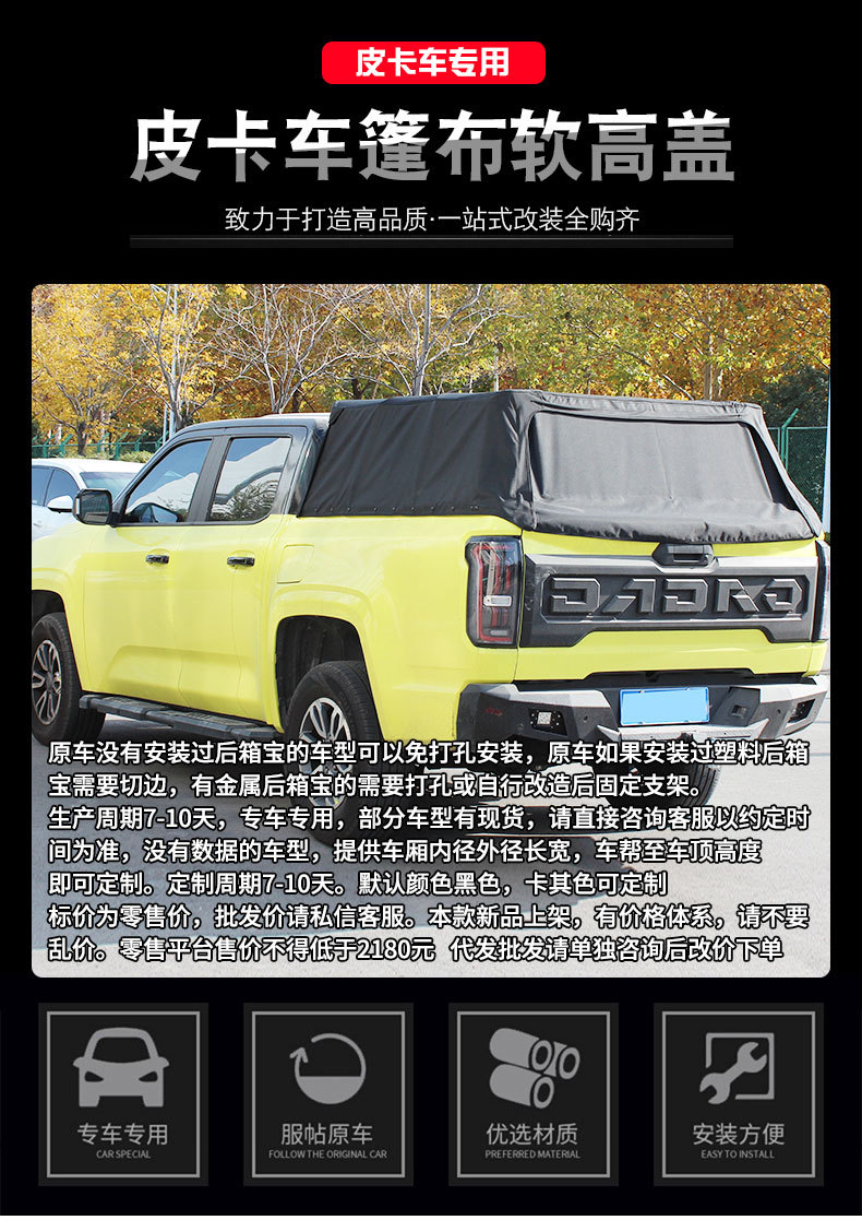 Shop the durable waterproof soft tonneau cover for GWM Cannon and JMC Dadao. Protect your truck bed from weather elements with this easy-to-install cargo tarp.