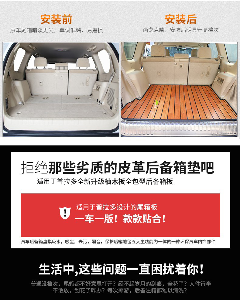 Solid Wood Rear Trunk Mat Floor Protector for Toyota Land Cruiser Prado 2010-2020 Interior Modification