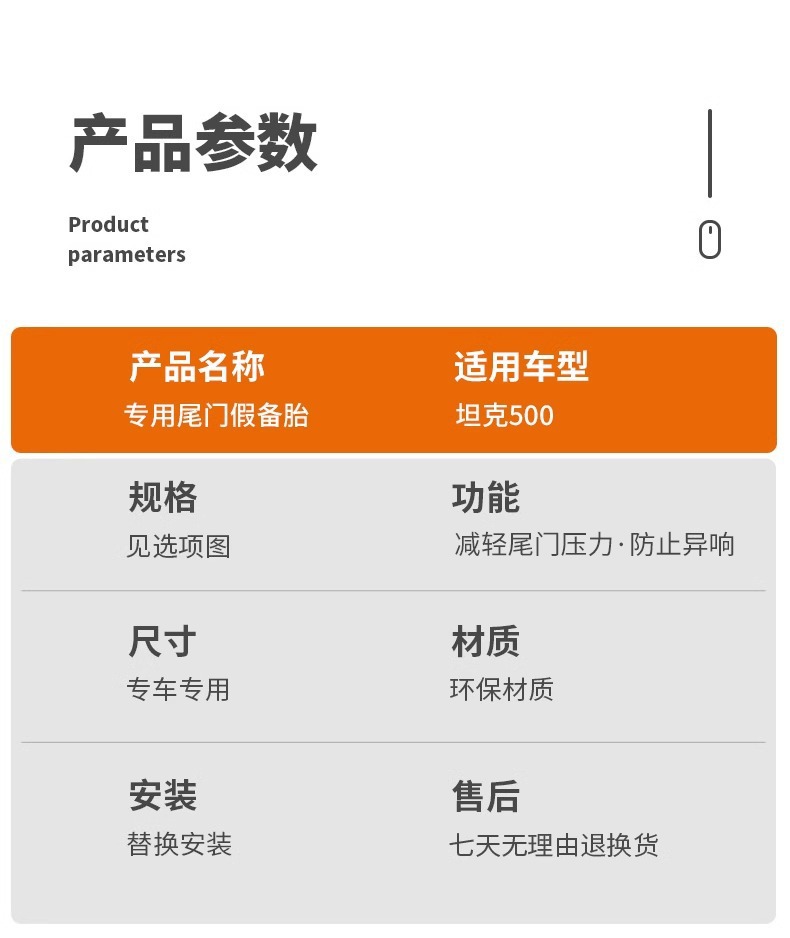 Spare Tire Bracket Replacement Kit for Tank 500 Exterior Rear Tailgate Reinforcement and Modification Accessory