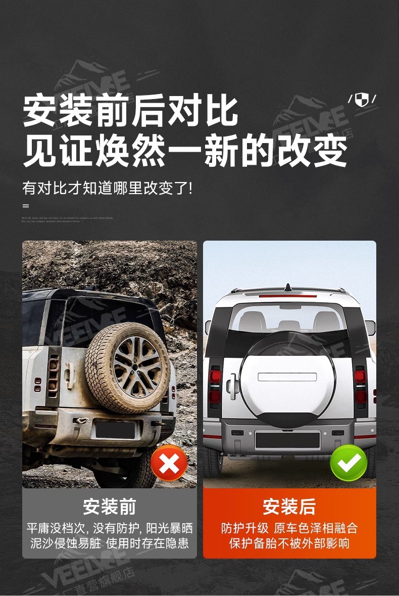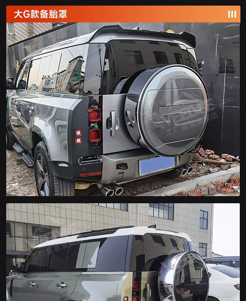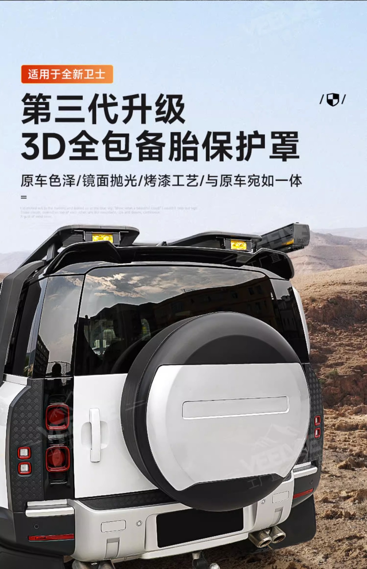 Tags: defender accessories, off-road tire shell, rear tire protector, spare tire cap, Spare Tire Cover, spare wheel case, wheel guard