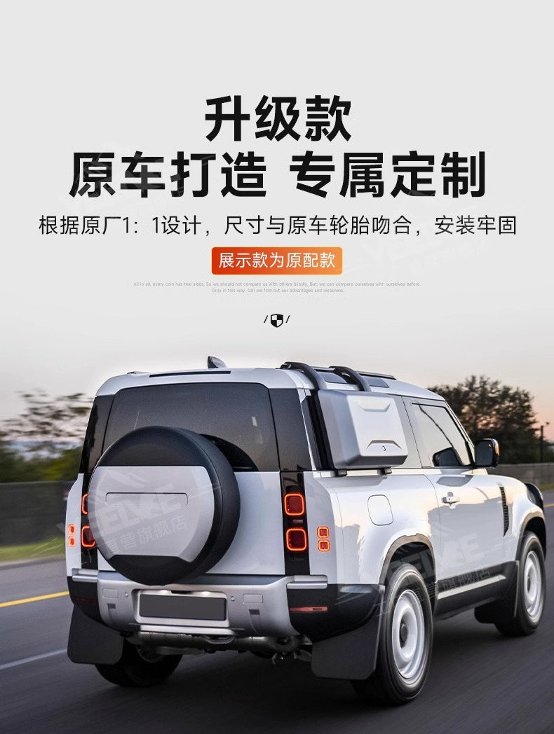 - Precise fitment specifically designed for Land Rover New Defender rear-mounted spare tires.