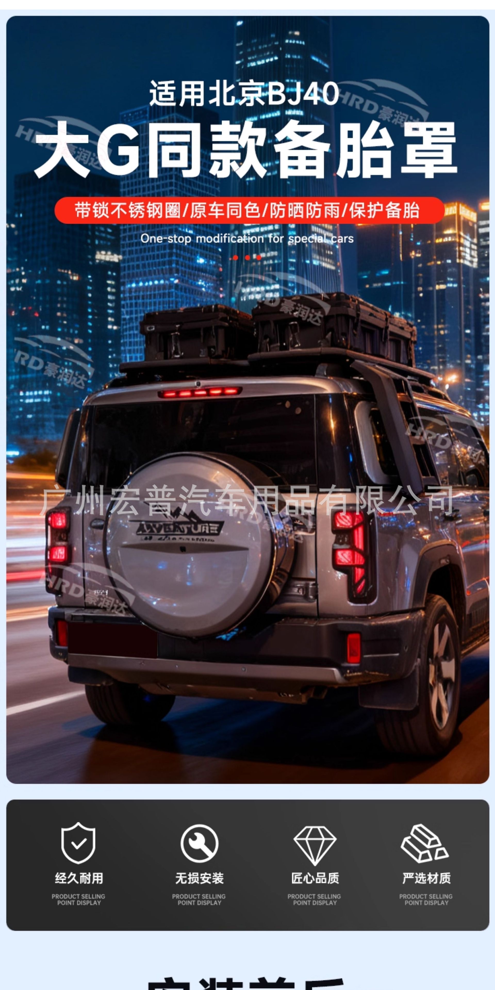 Tags: BJ40e accessories, off-road tire shell, rear tire case, Spare Tire Cover, spare wheel guard, tire protector, vehicle exterior trim