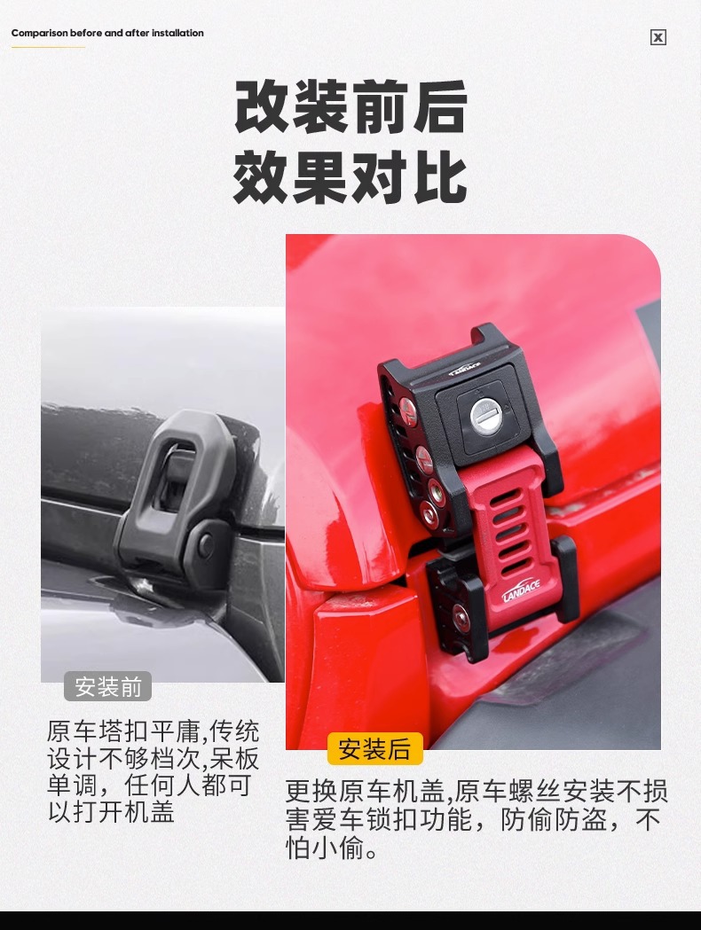 Be the first to review “Special 18-23 Wrangler/Gladiator JT cover buckle modified engine engine anti-theft lock accessories” Cancel reply