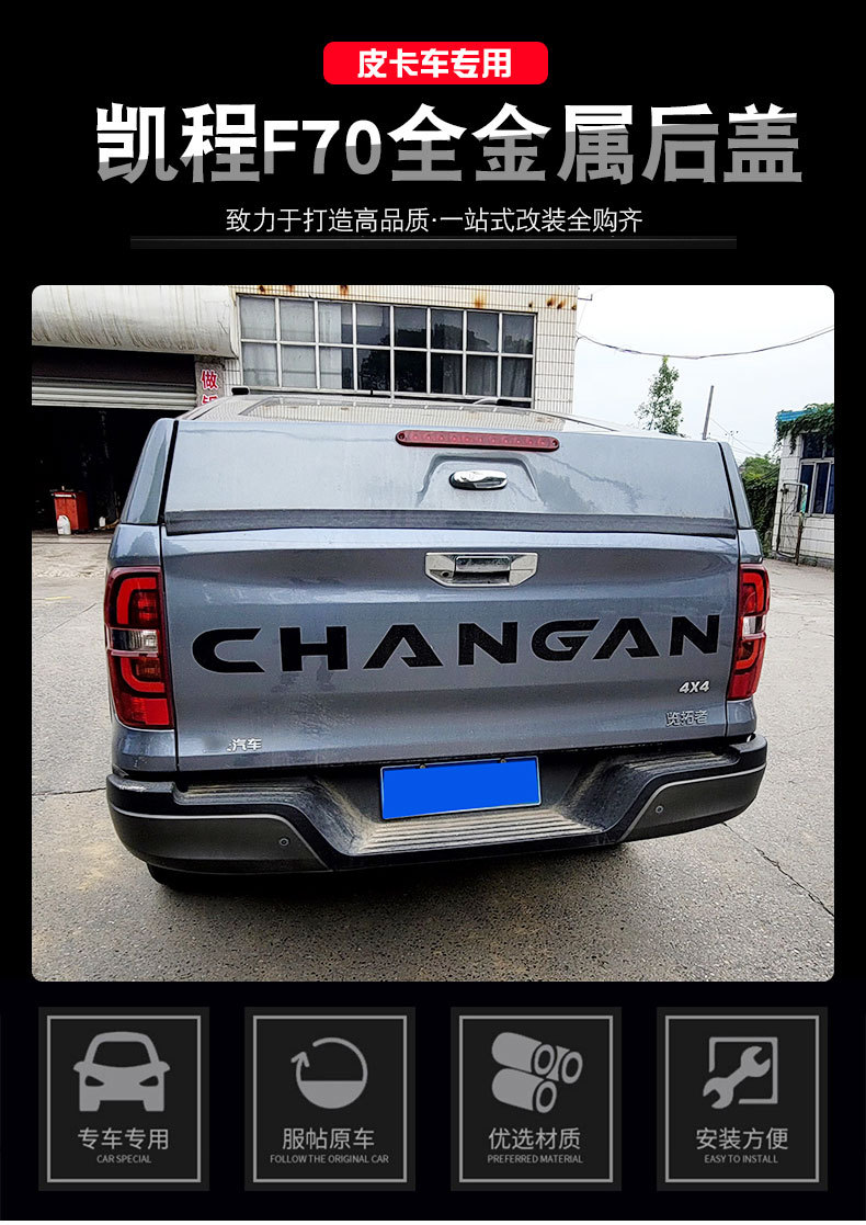 Upgrade your Changan F70 Lantuo with this sporty slant tonneau cover. Durable, weather-resistant bed canopy ensures cargo security and aerodynamic efficiency.