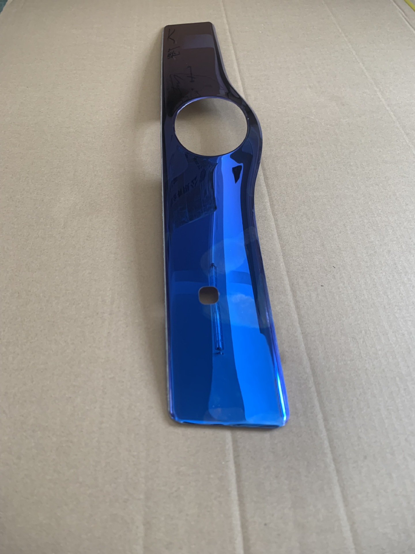 - Precision-engineered rear tailgate garnish trim designed to enhance vehicle exterior aesthetics with a vibrant blue finish.