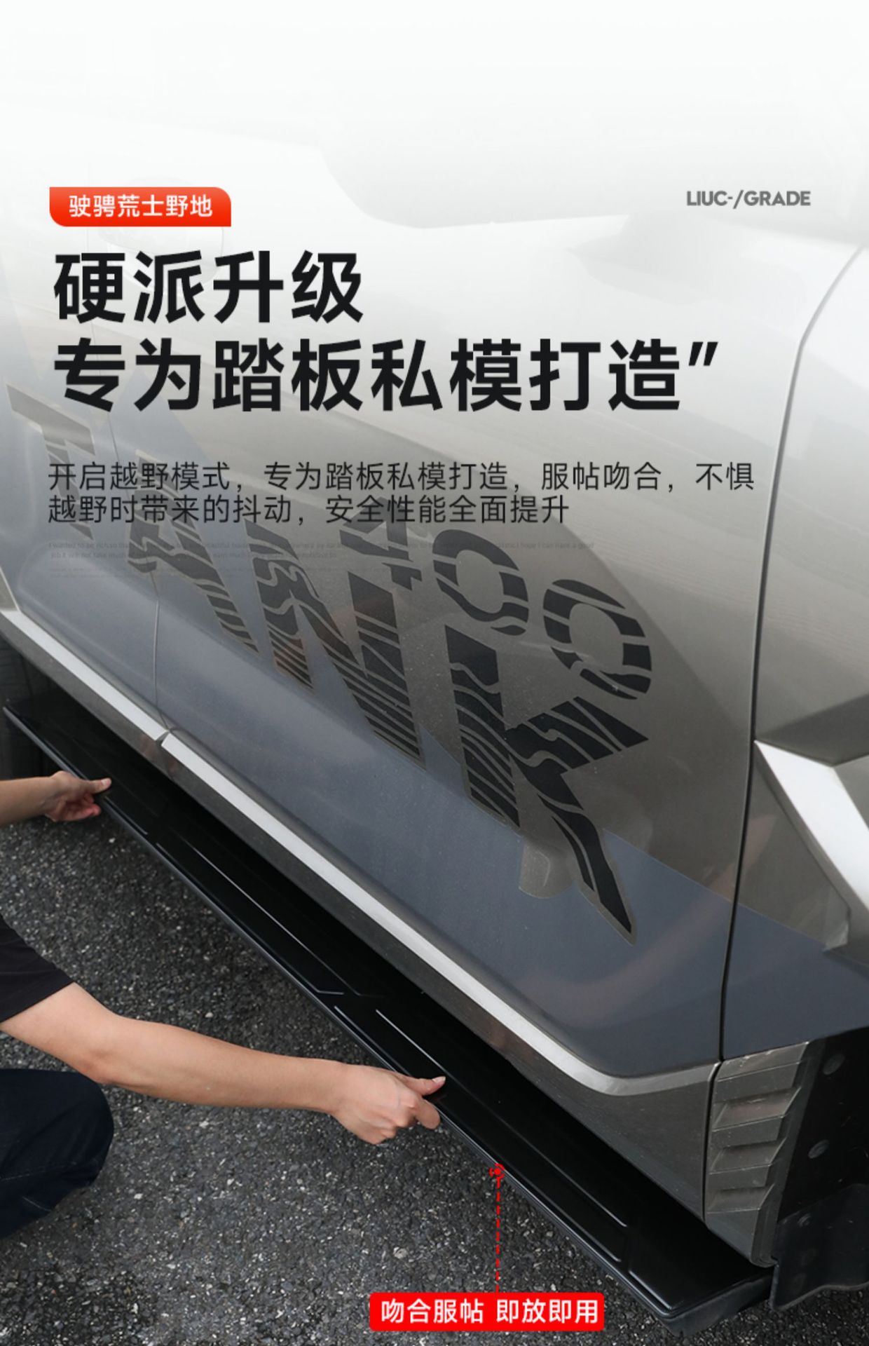 - Specifically designed as a protective cover for the electric side steps and door sills of the Tank 400 Hi4-T model.