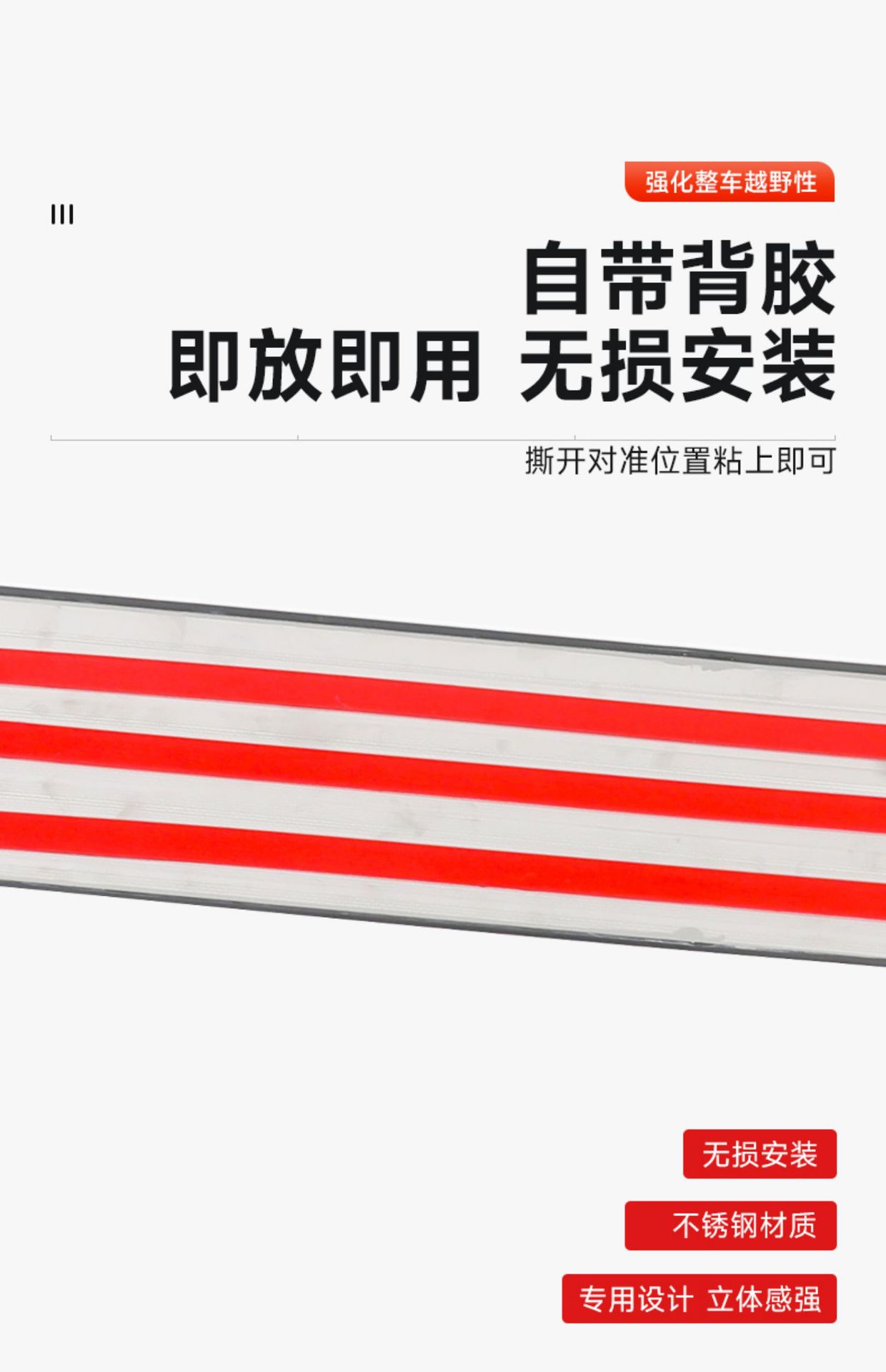 - Features a simplified installation process using automotive-grade adhesive backing for a secure and long-lasting bond.