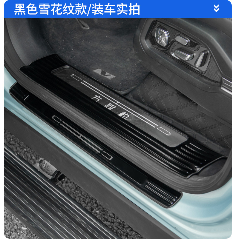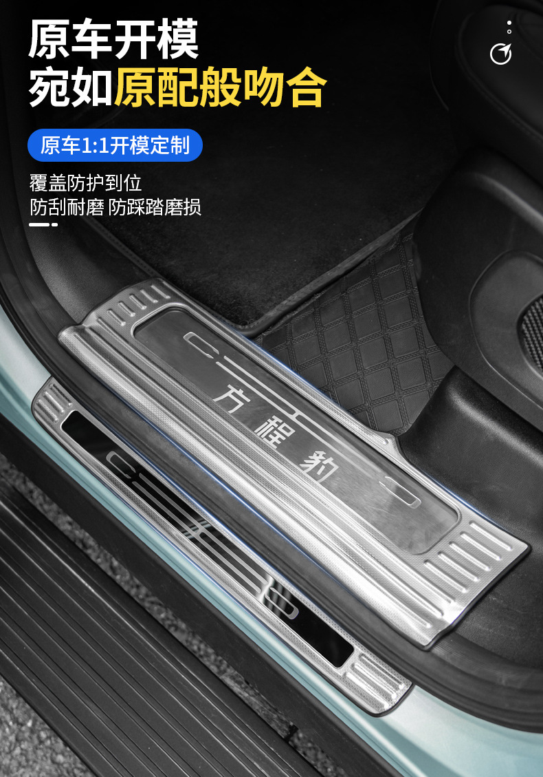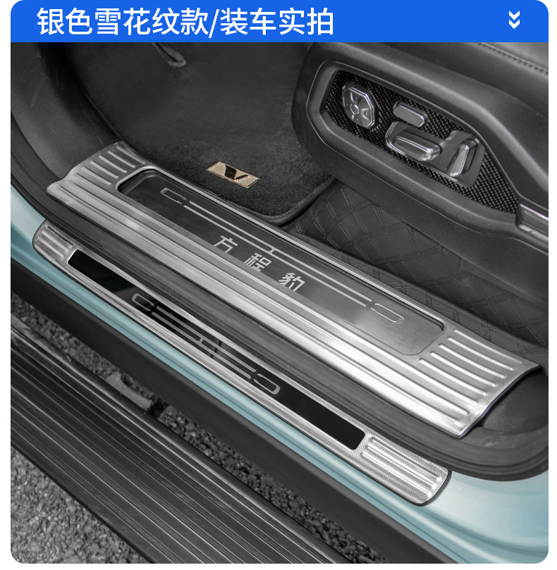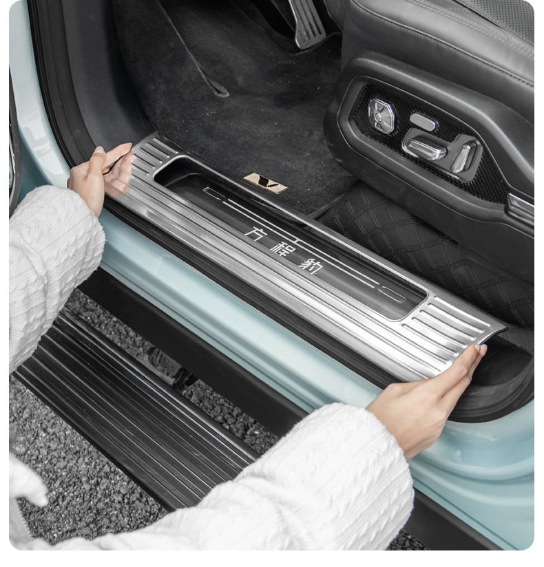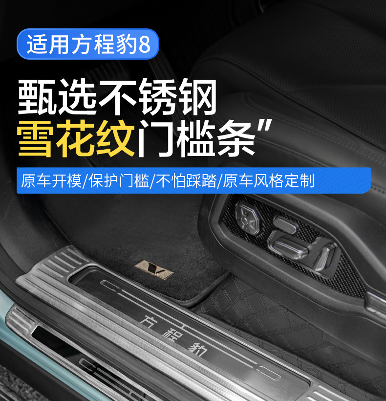 Upgrade your Fang Cheng Bao 8 with stainless steel door sill guards. Featuring a snowflake texture and thickened design for ultimate scratch and wear protection.