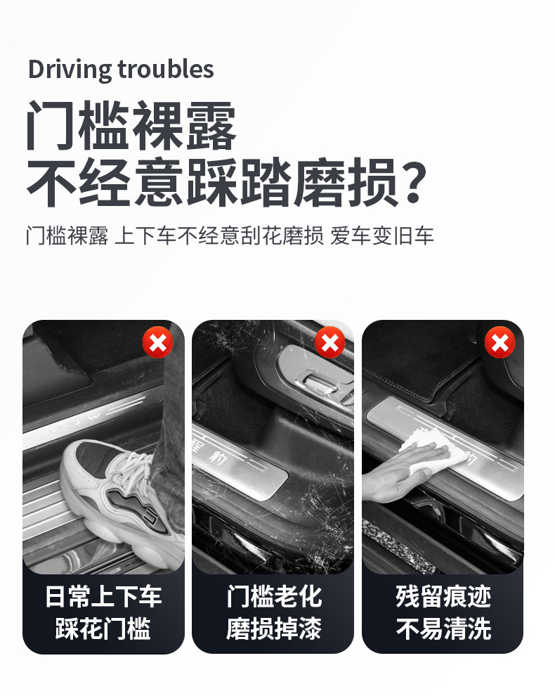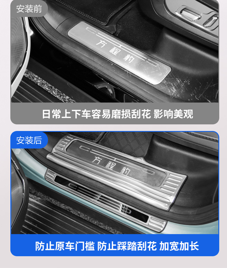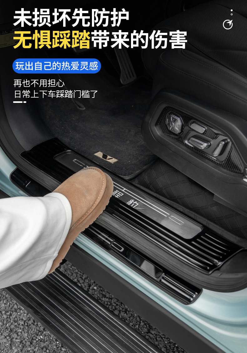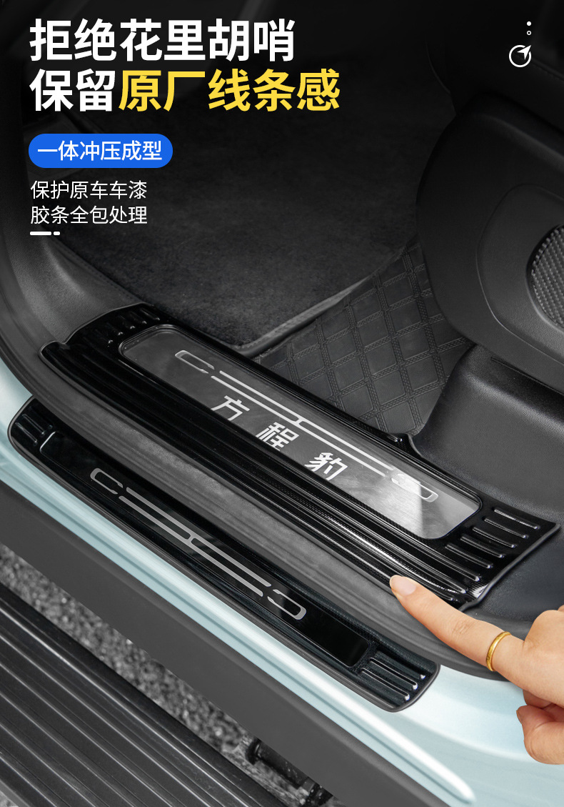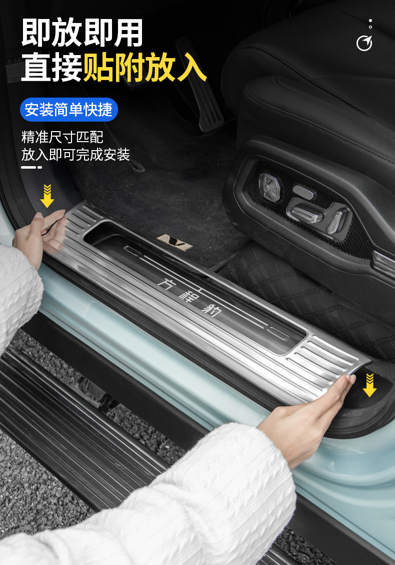 Upgrade your Fang Cheng Bao 8 with stainless steel door sill guards. Featuring a snowflake texture and thickened design for ultimate scratch and wear protection.