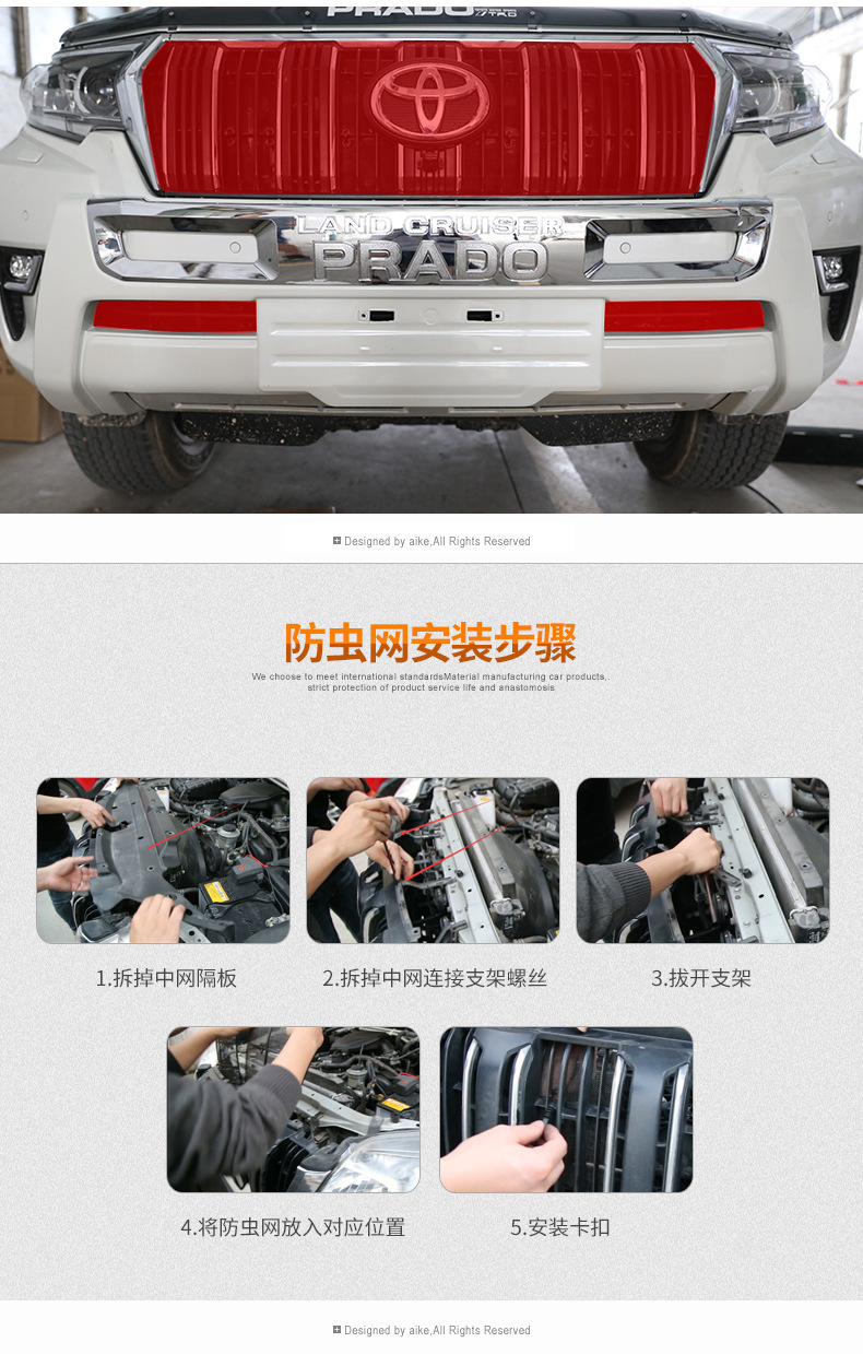 Protect your vehicle with this premium stainless steel front grille mesh for Land Cruiser Prado 2010-2020. Prevents insects and debris from damaging your radiator.