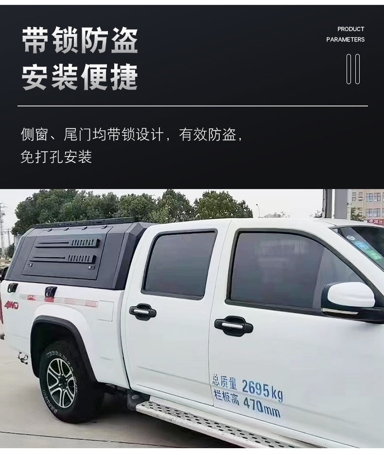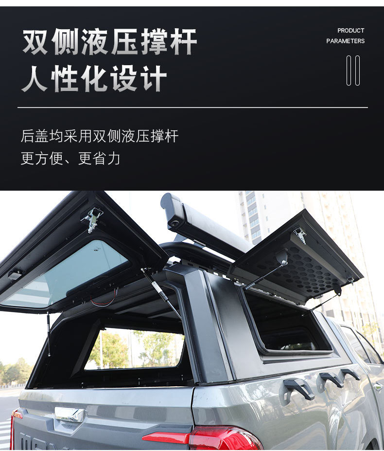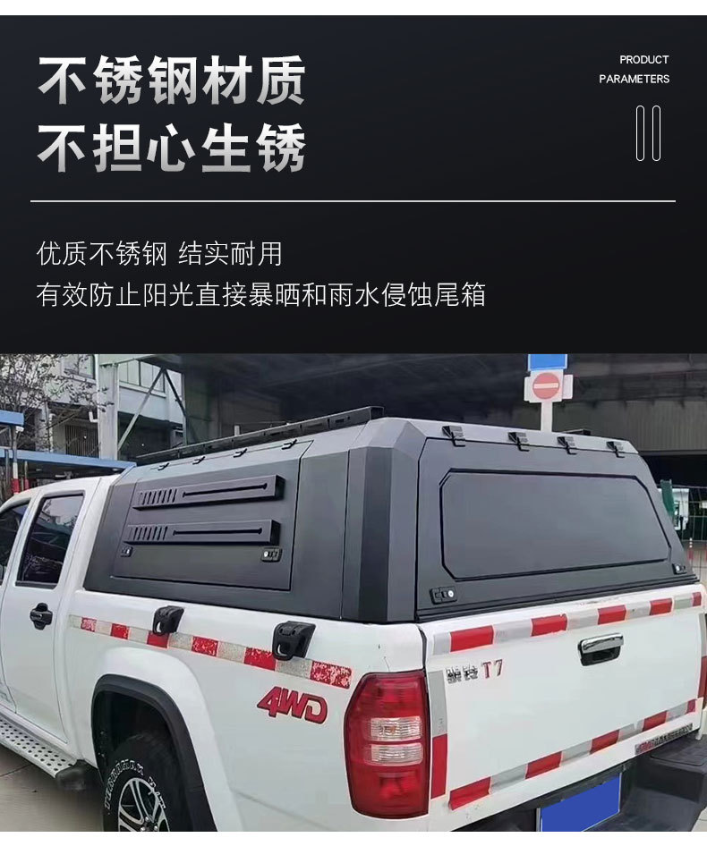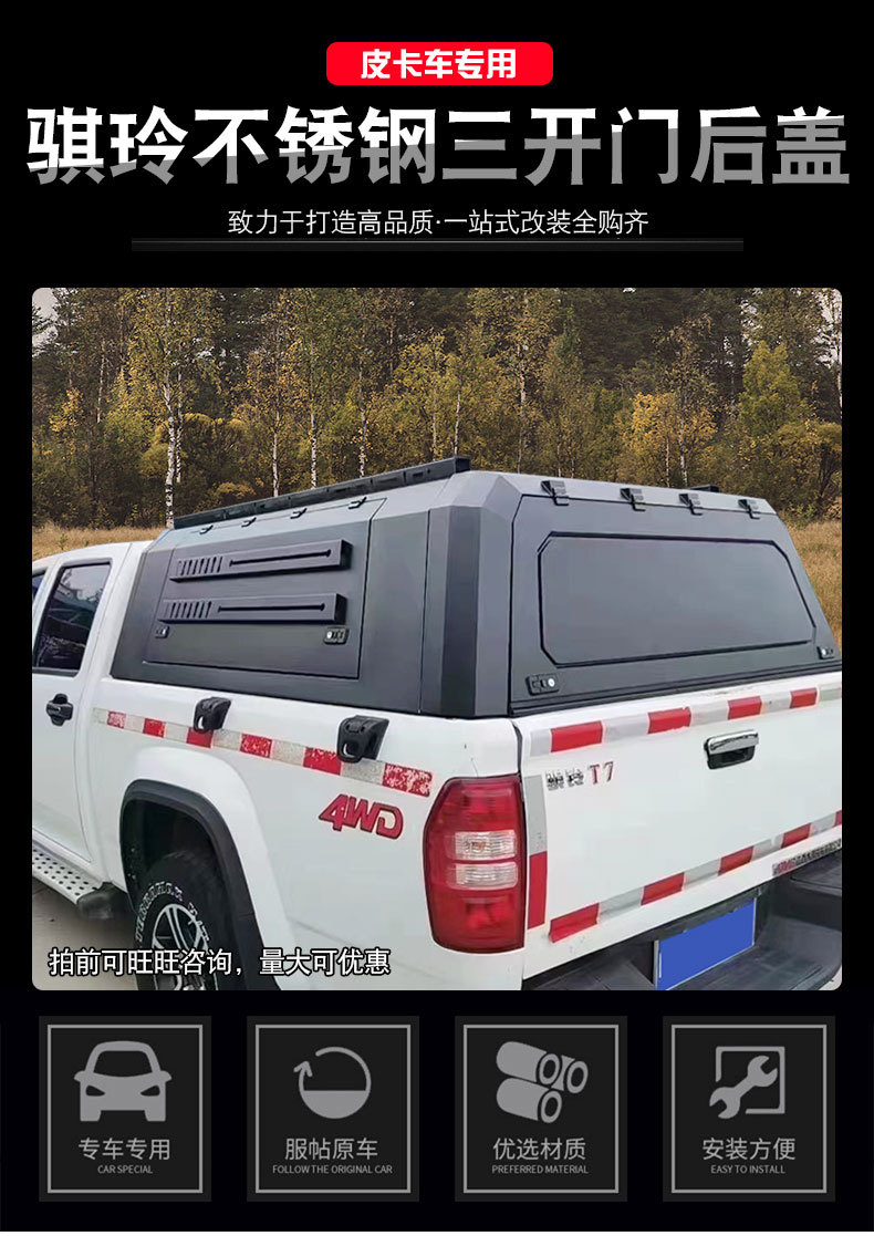 Tags: 3-door truck canopy, cargo box cover, JMC Qiling T7 accessories, pickup canopy high top, stainless steel truck cap, truck bed topper