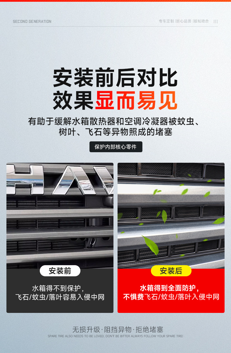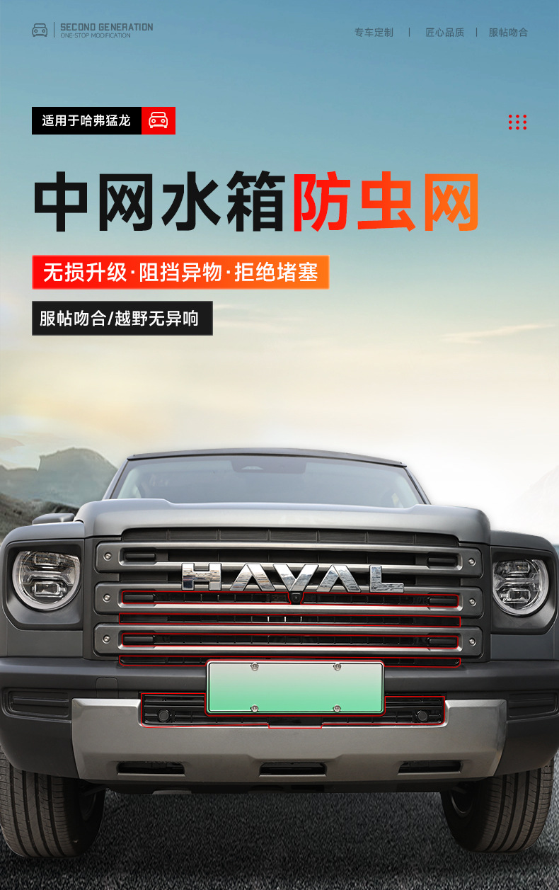 Protect your Haval Raptor’s radiator with our thickened stainless steel insect screen. Prevents debris and bugs while ensuring optimal airflow and cooling.