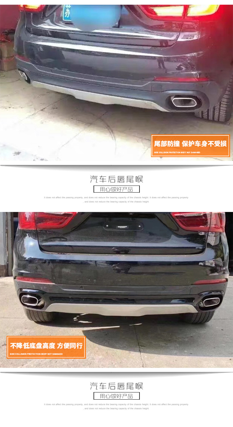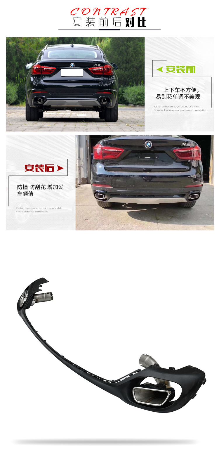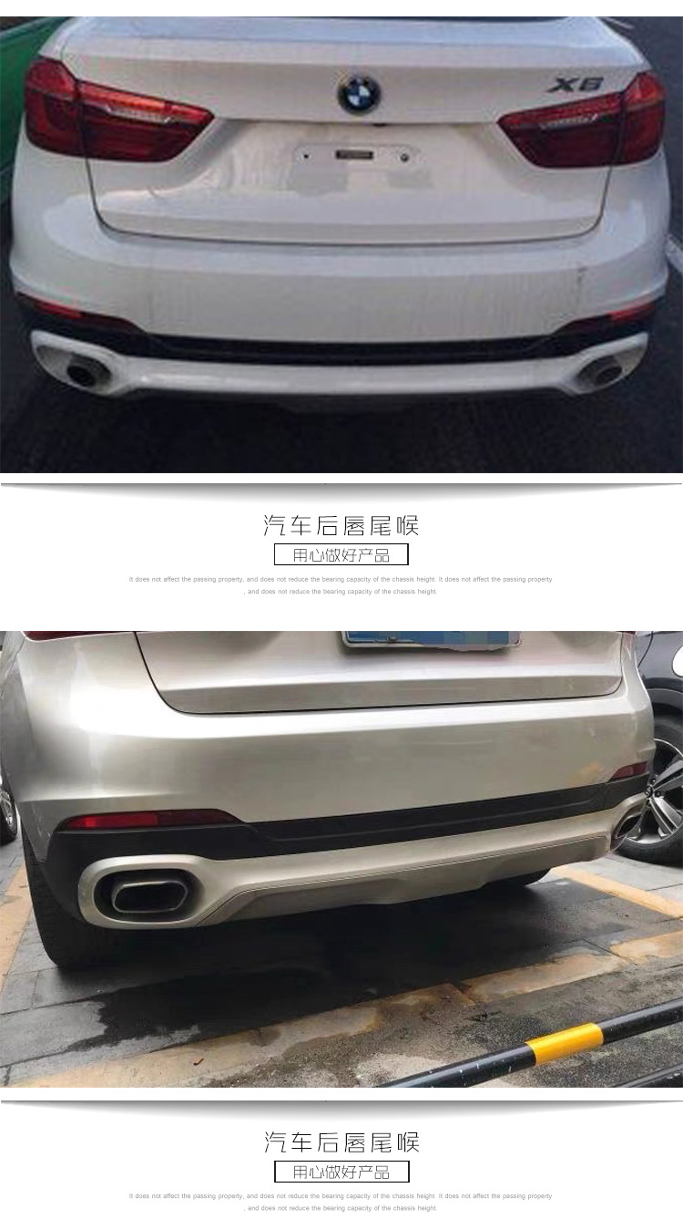 - Precise square-mouth design specifically engineered for BMW X6 F16 2015-2018 rear bumper integration.