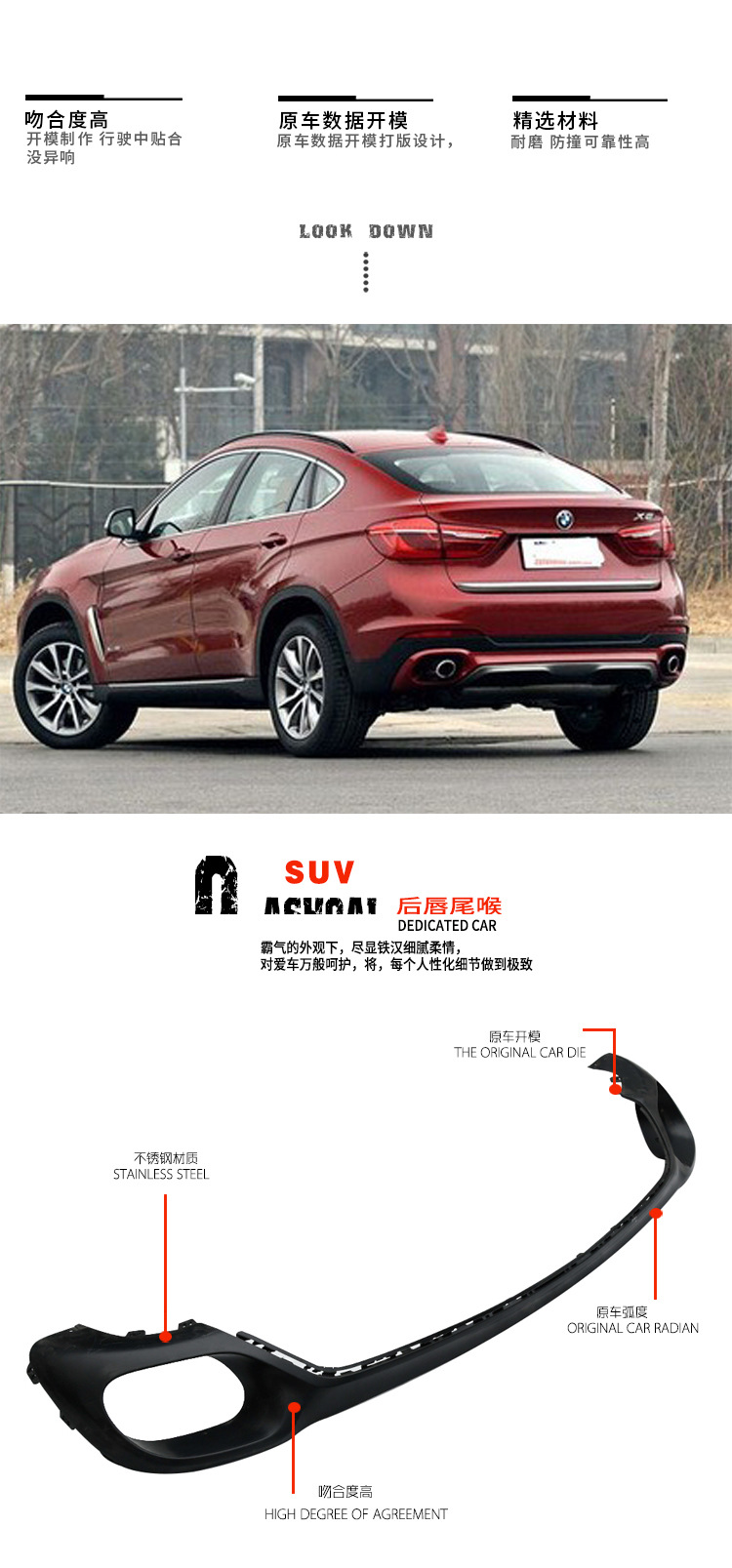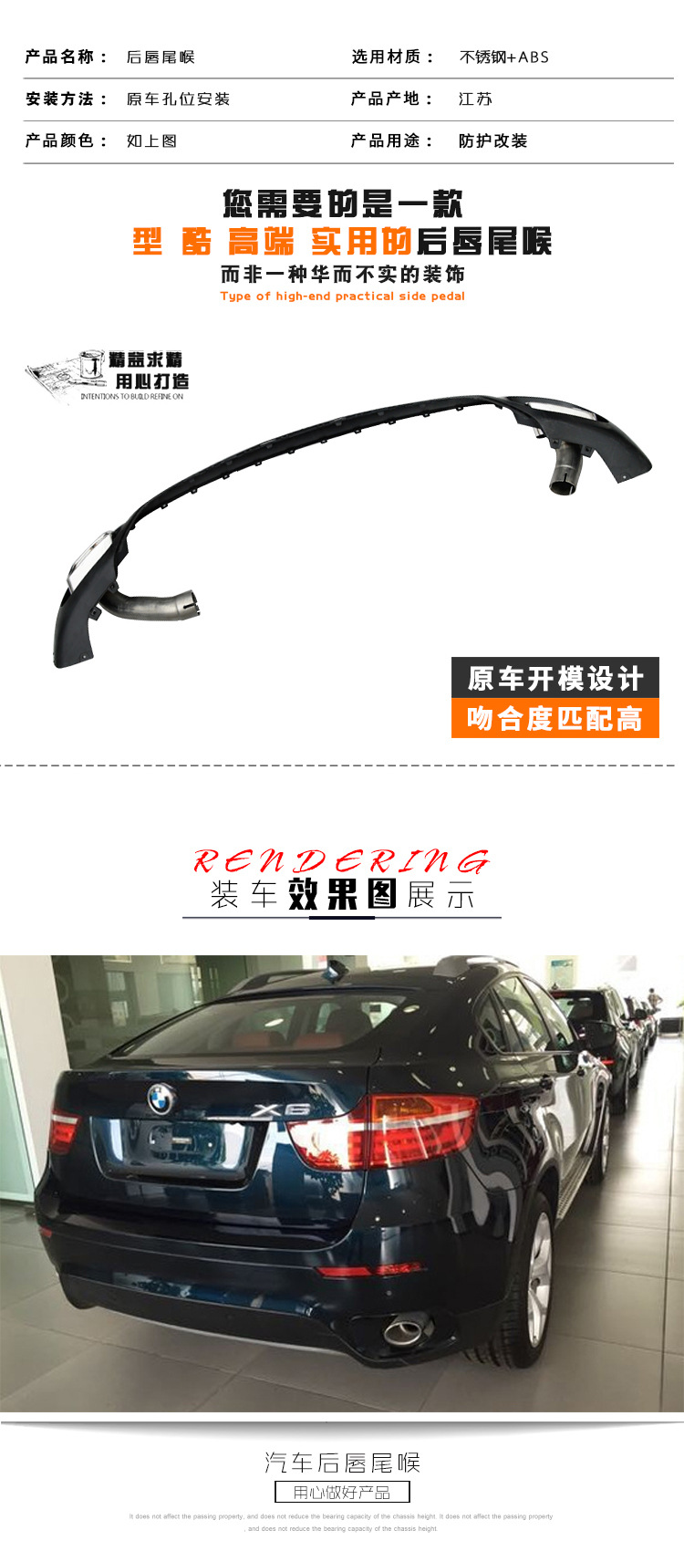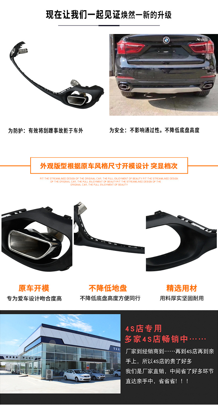 - Precise square-mouth design specifically engineered for BMW X6 F16 2015-2018 rear bumper integration.