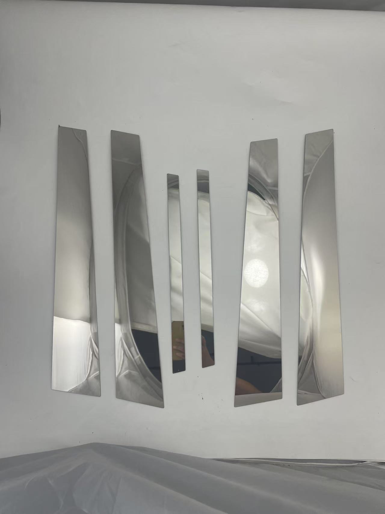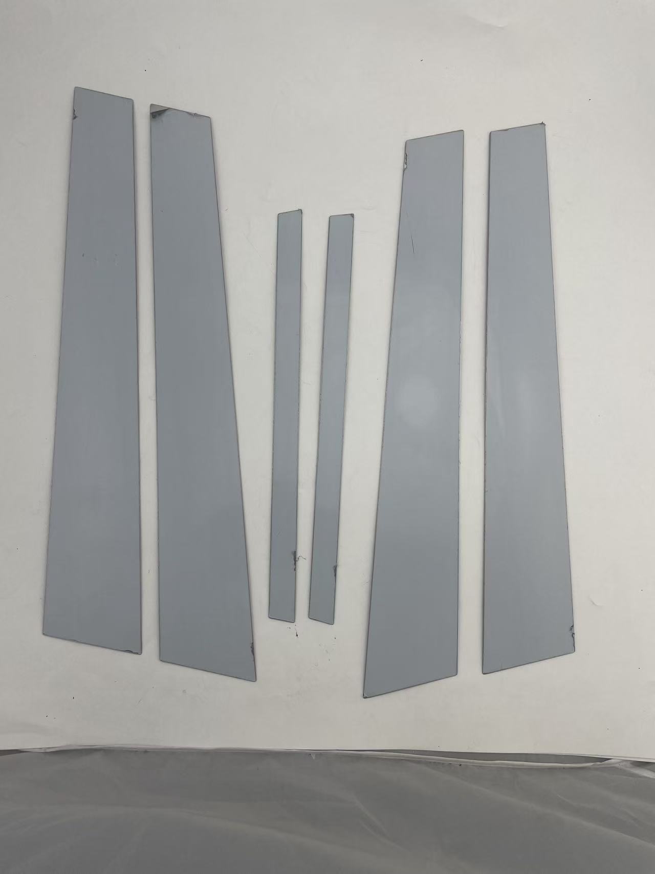 Tags: B-pillar trim, BMW window styling, car pillar decals, exterior chrome trim, silver car accents, stainless steel car trim, window post cover