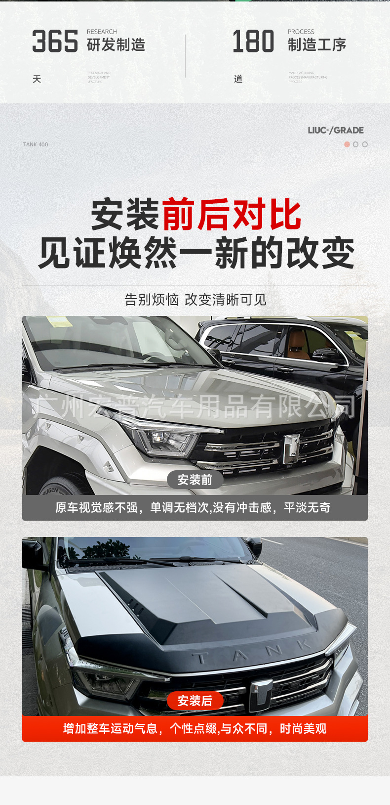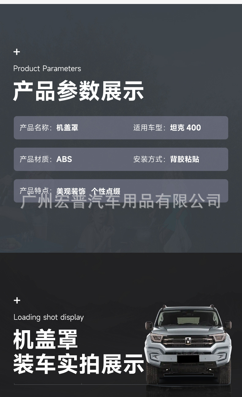 Stone Guard Hood Bonnet Deflector Matte Black Protector for Tank 400 Hi4-T Off-Road Upgrade Kit