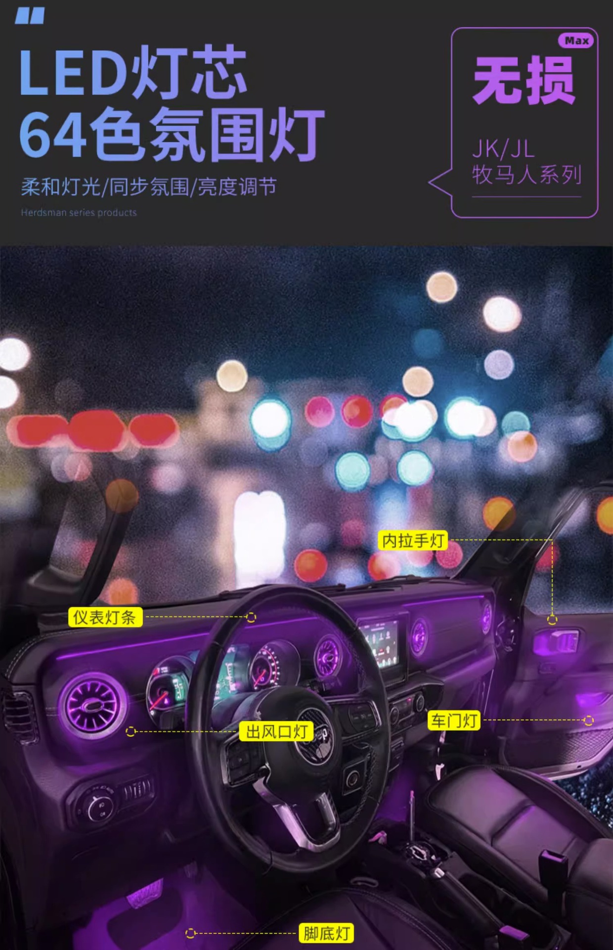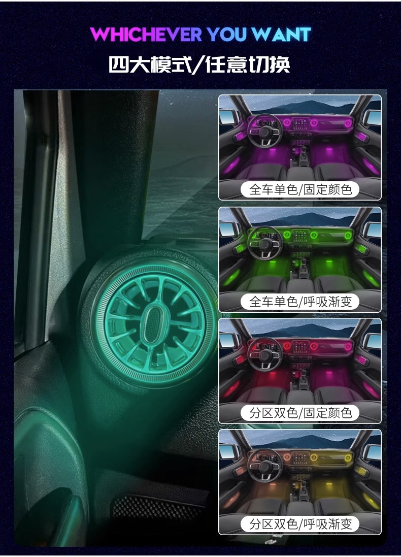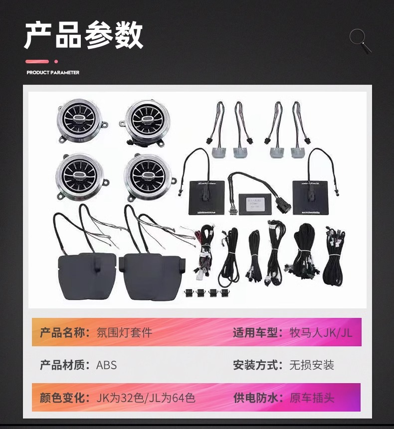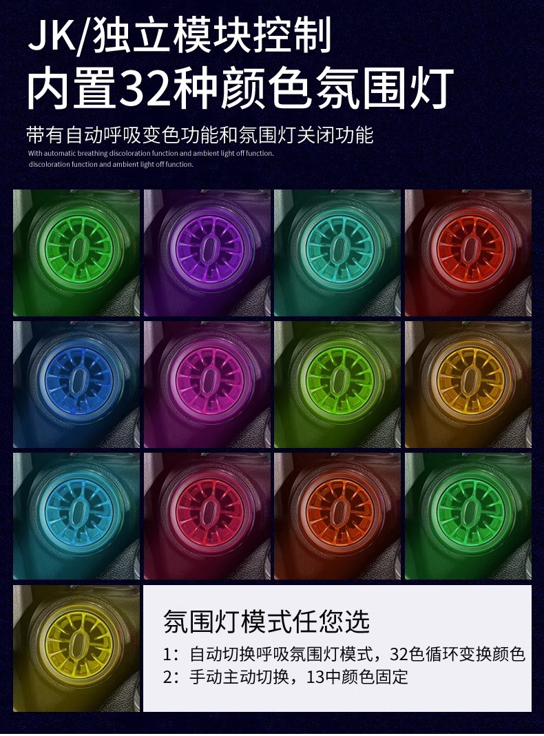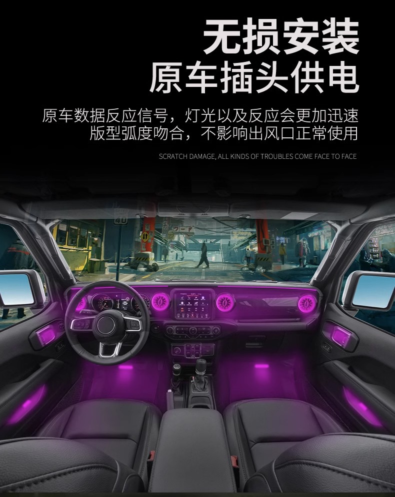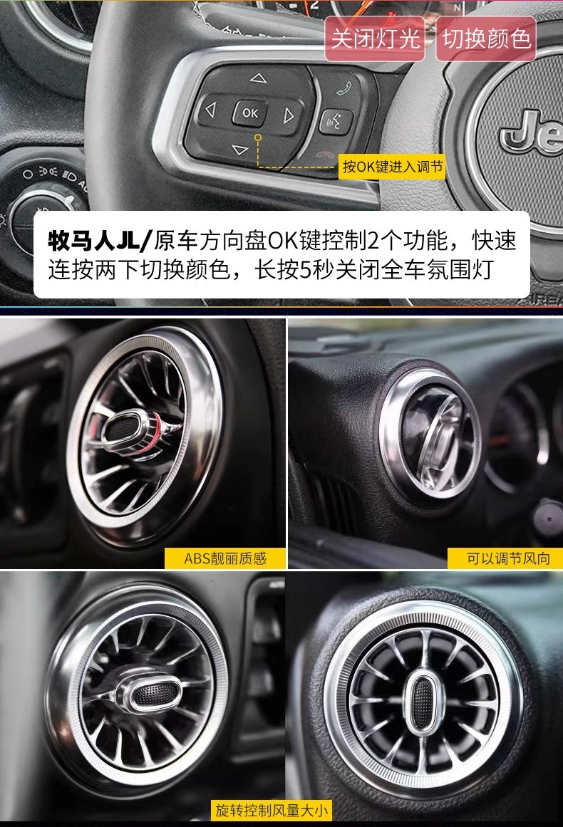 Suitable for 11-23 models of Wrangler jl atmosphere light modification parts air conditioning outlet door interior atmosphere light