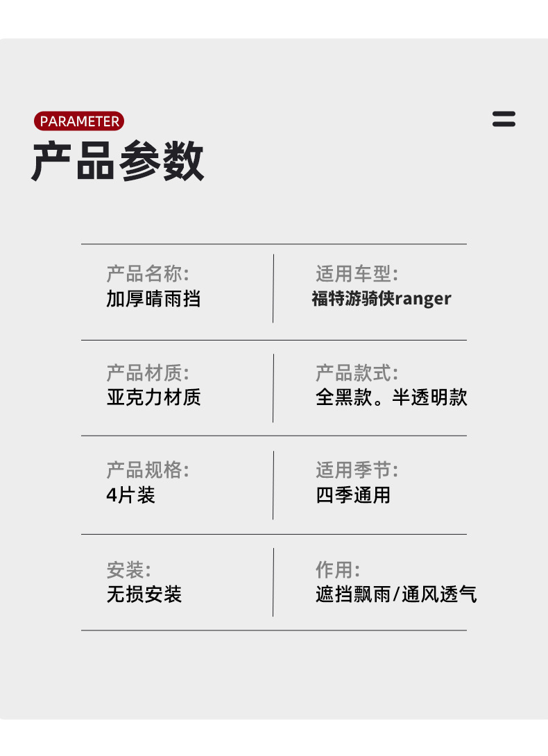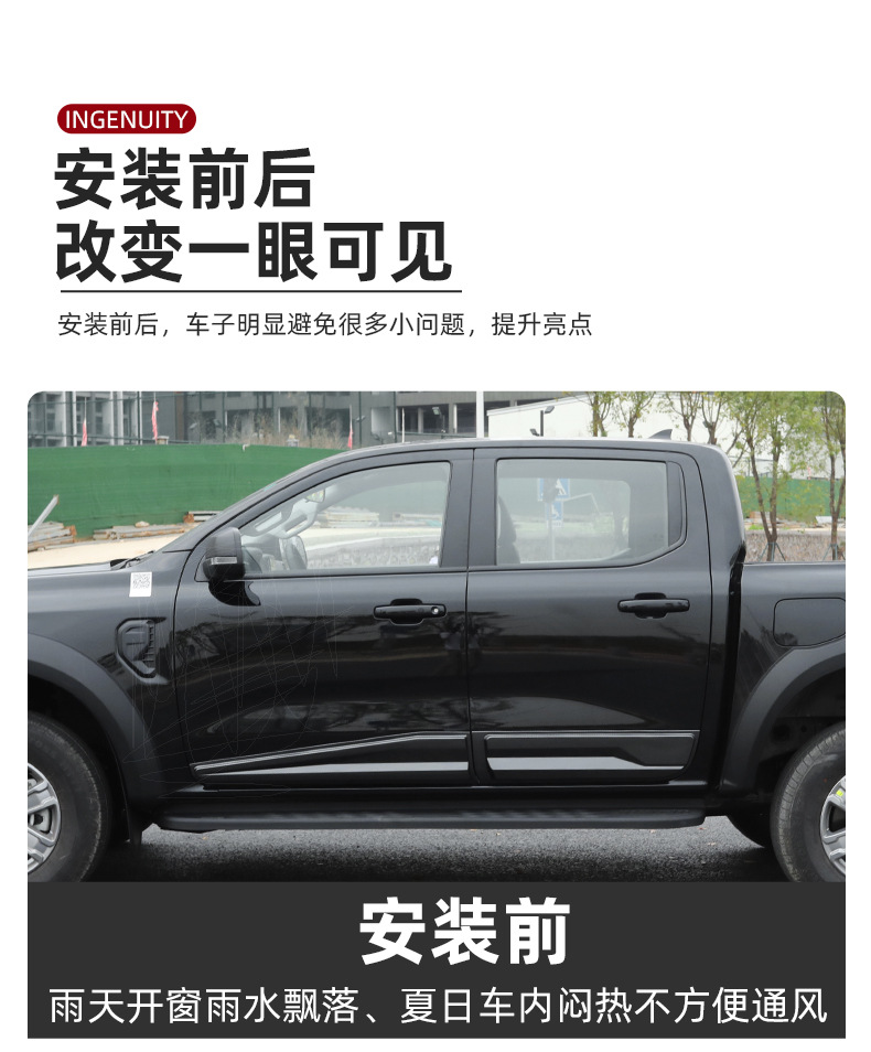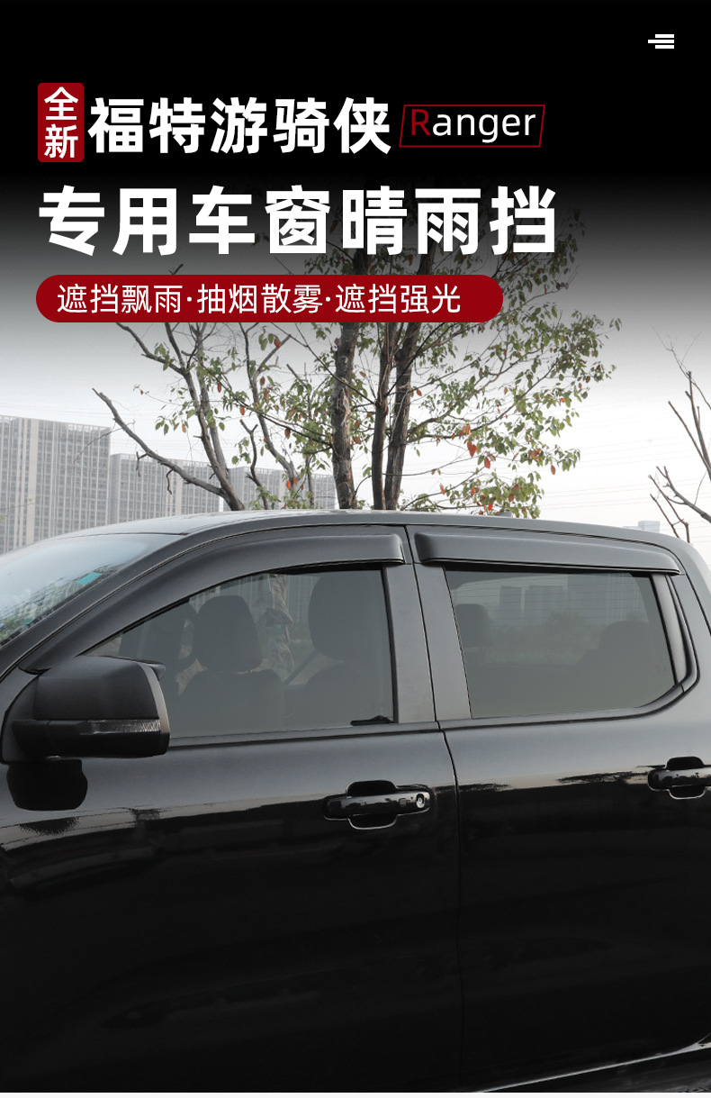 Suitable for 23-24 Ford Ranger Ranger Sunny Rain Baffle Modification Special Window Rain Eyebrow Baffle Exterior Trim