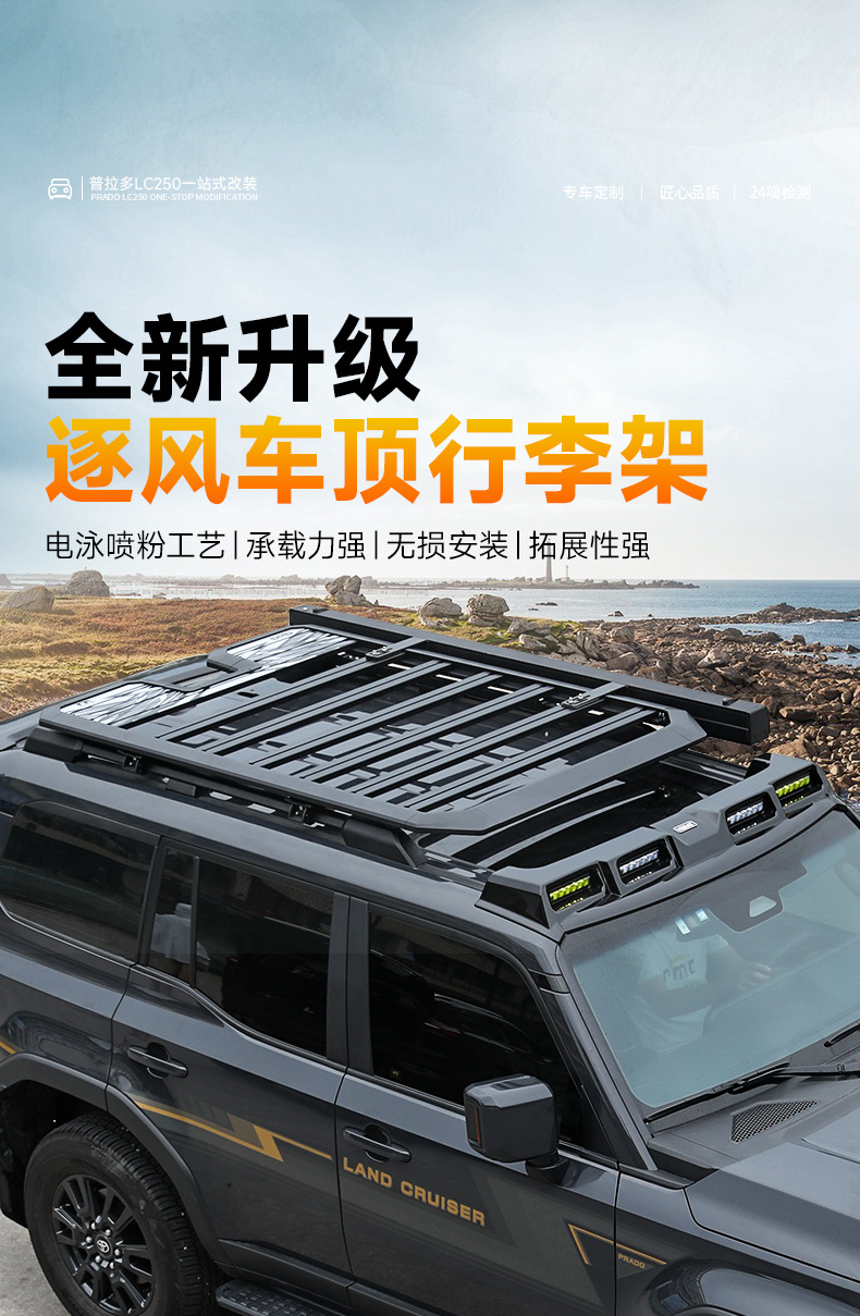 Suitable for 24-25 Prado Lc250 Roof Rack Frame Off-Road Modified Domineering Ladder Platform Aluminum Alloy