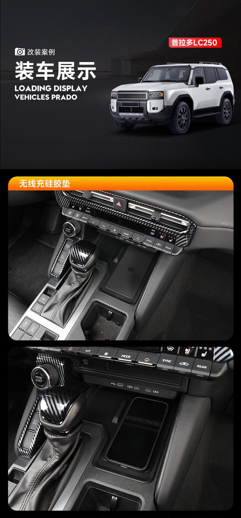 Suitable for 24/25 Prado Wireless Charging Silicone Mat Lc250 Central Control Anti-Slip Mat Interior Supplies Modification