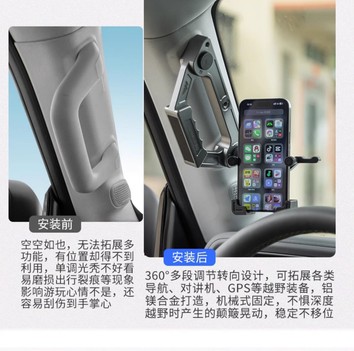 Be the first to review “Suitable for brand new BJ40 mobile phone holder A- pillar handle multifunctional aluminum alloy A- pillar handle sports camera base” Cancel reply