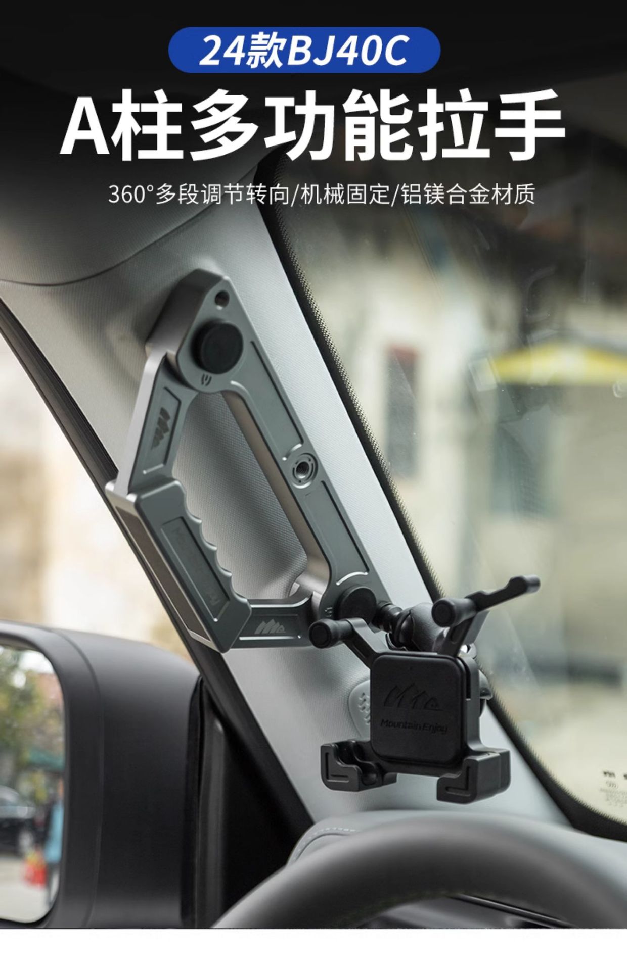 Suitable for brand new BJ40 mobile phone holder A- pillar handle multifunctional aluminum alloy A- pillar handle sports camera base