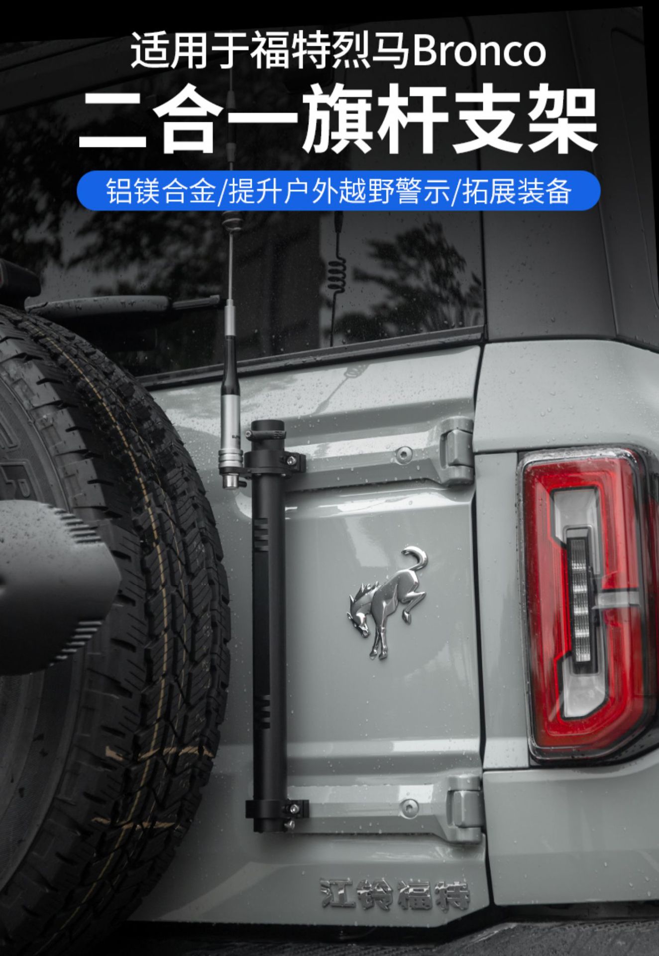 Suitable for Ford Fiery horse bronco special modified rear door hinge aluminum alloy two-in-one flagpole antenna bracket
