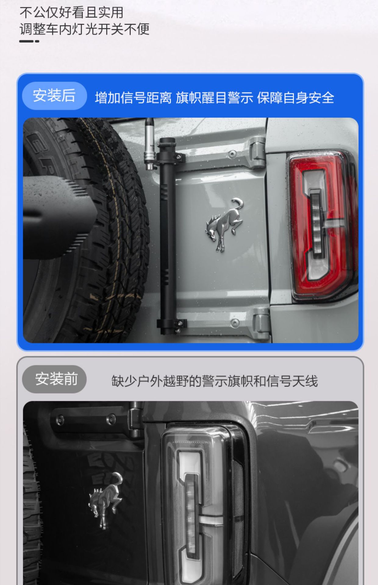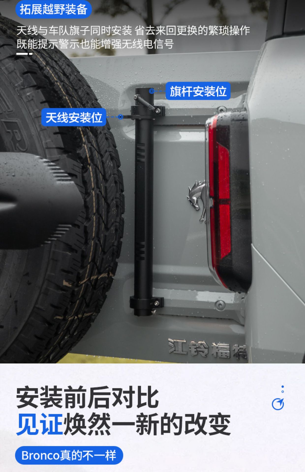 Be the first to review “Suitable for Ford Fiery horse bronco special modified rear door hinge aluminum alloy two-in-one flagpole antenna bracket” Cancel reply