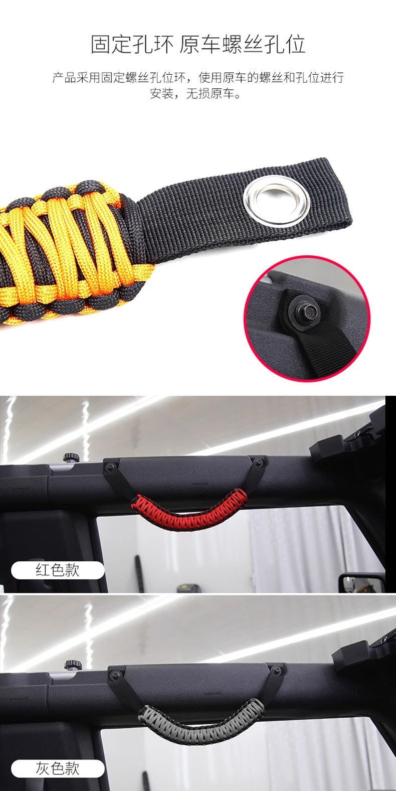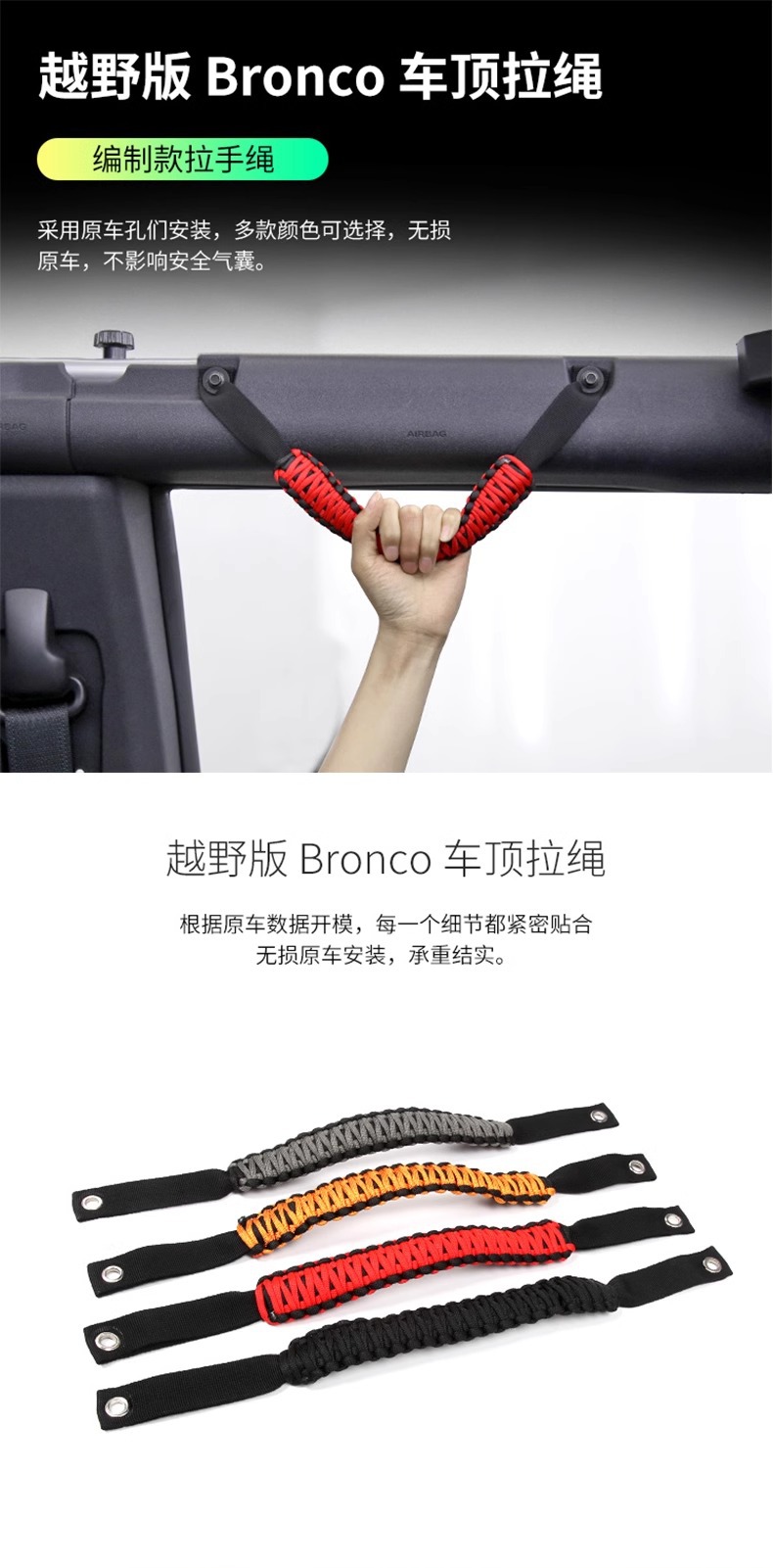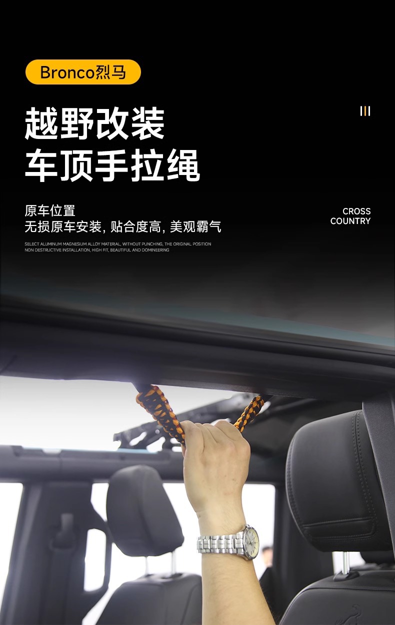 Suitable for Ford Liema BRONCO front roof handle rope anti-roll bar door grab rope interior modification parts