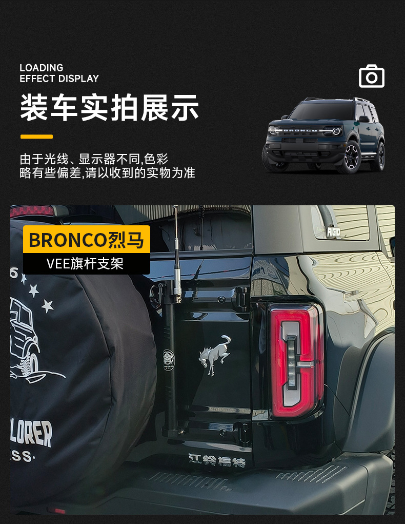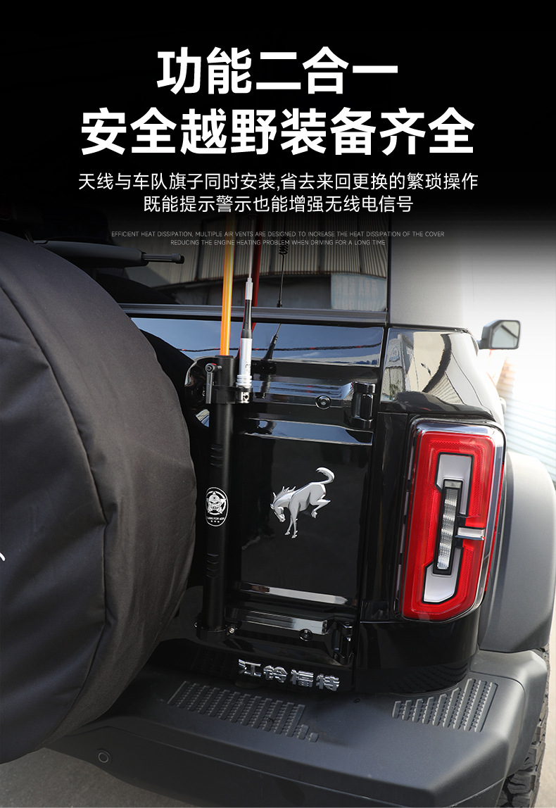 Suitable for Ford Liema Bronco Multifunctional Flagpole Holder Two-in-One Flagpole Rack Modified Flagpole Antenna Accessories
